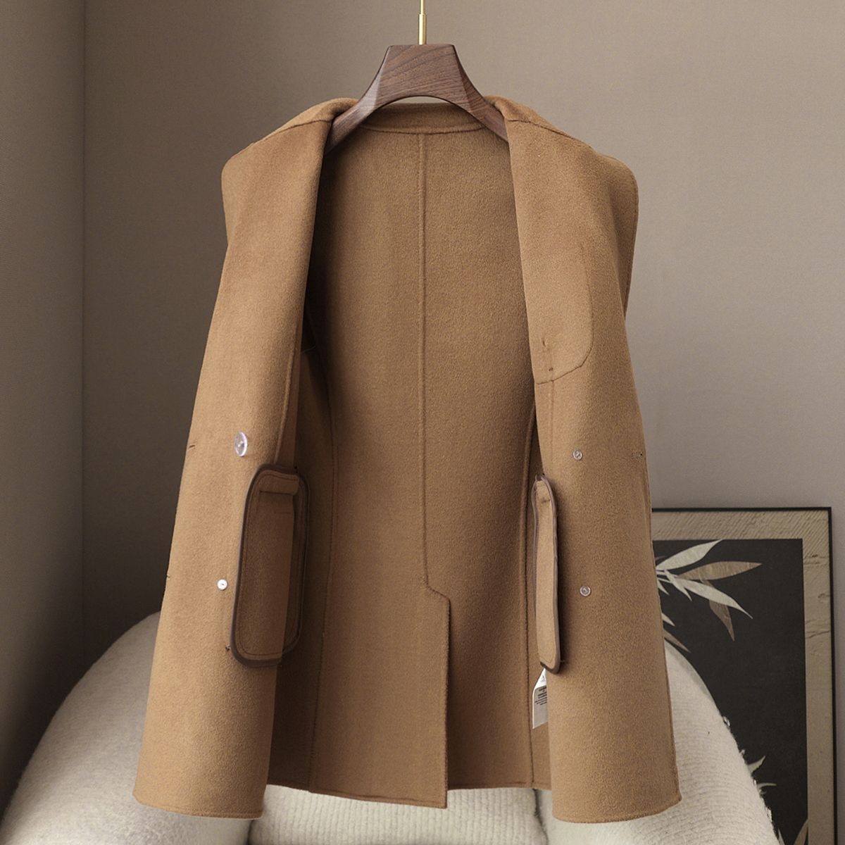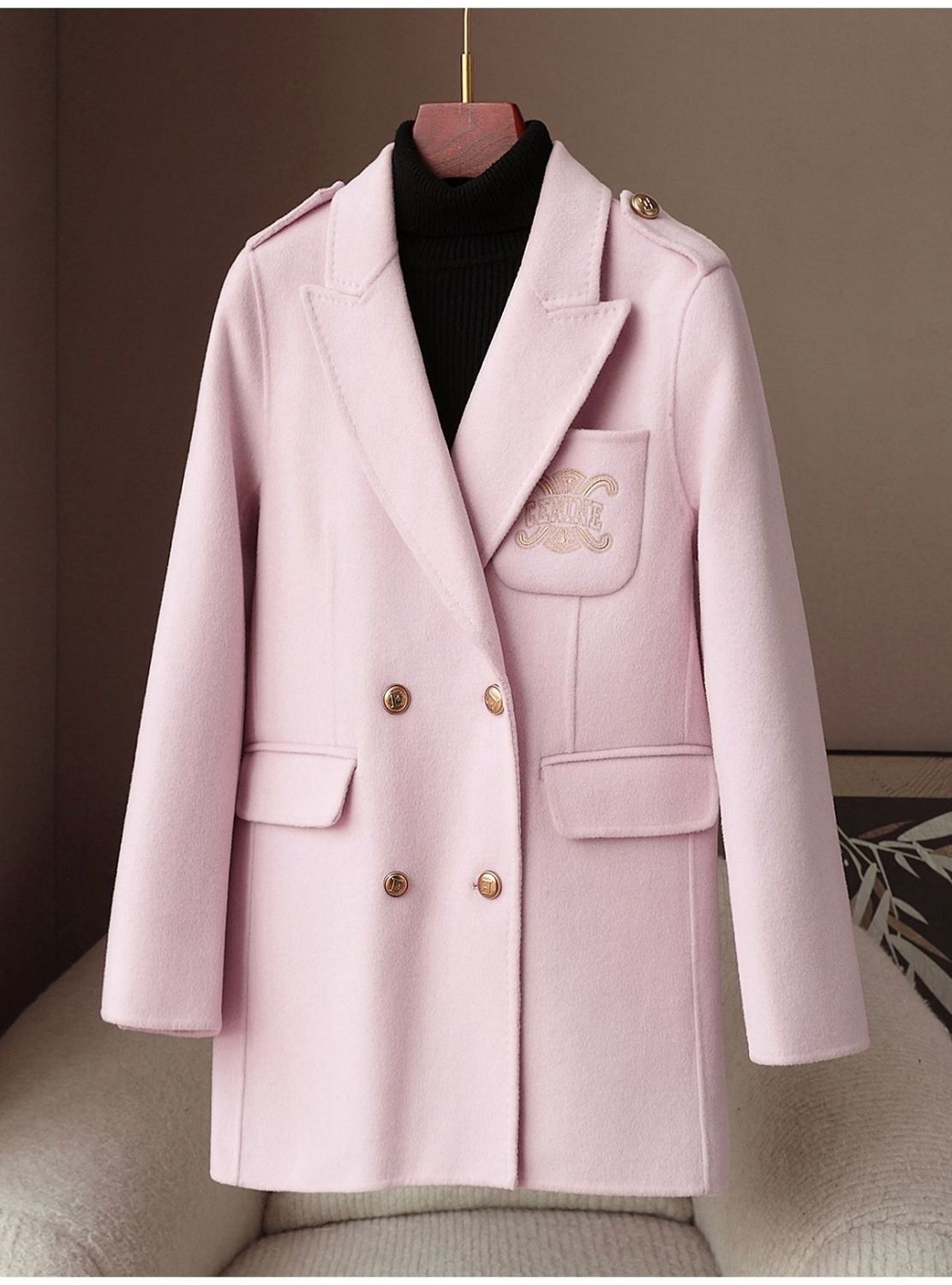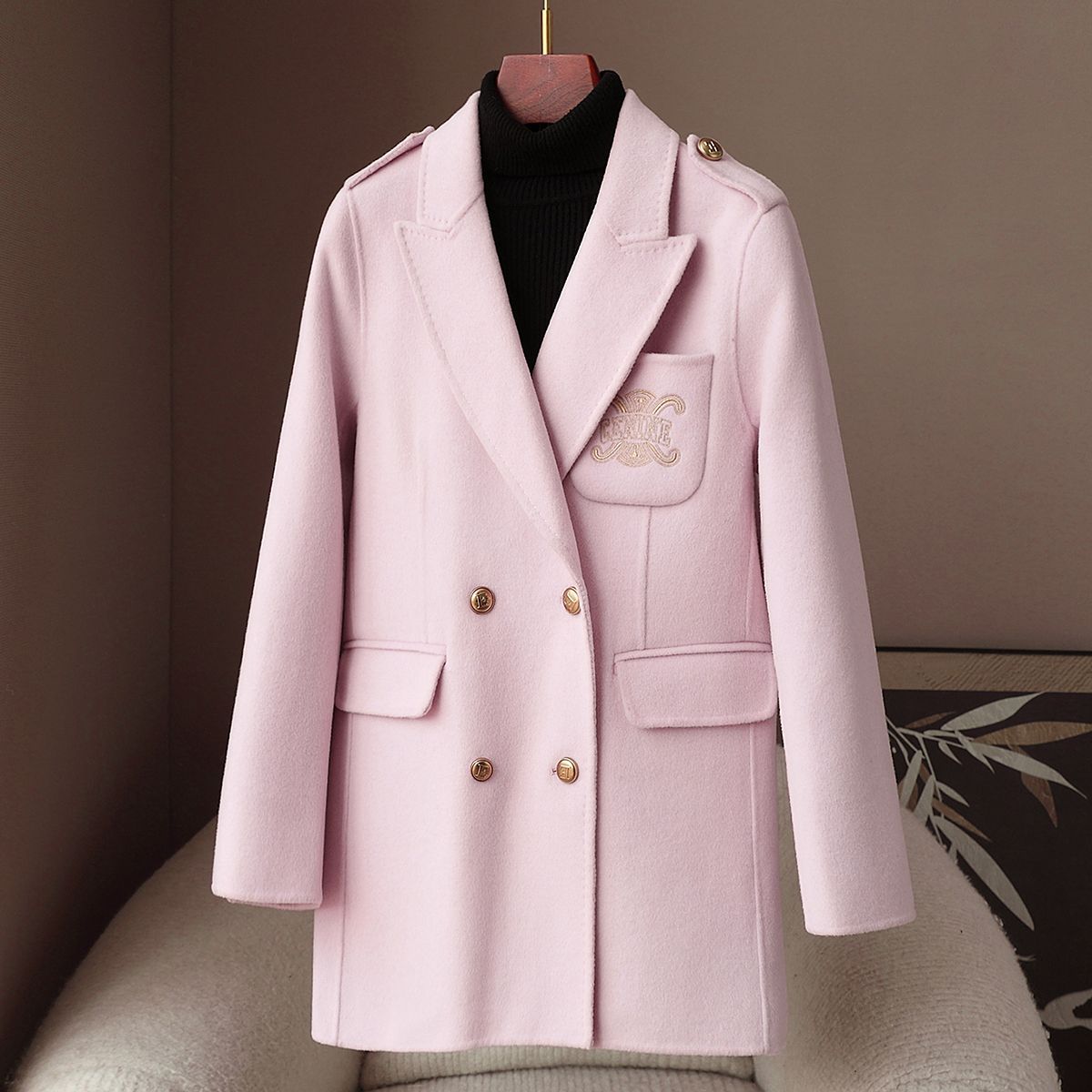 品牌: 其他 货号: PDXM25022709C 主面料成分: 羊绒 主面料成分2: 羊毛 图案: 纯色 厚薄: 中等 版型: 直筒型 衣长: 中长款(65cm<衣长≤80cm) 领型: 西装领 袖长: 长袖 工艺: 拼接 上市年份/季节: 2025年春季 颜色: 卡其色,浅粉色 风格类型: 气质通勤 门襟: 单排多扣 主面料成分含量: 30%以下 风格: 通勤风 流行元素: 口袋 面料名称: 羊绒 袖型: 常规袖 重量: 0.5 kg/件