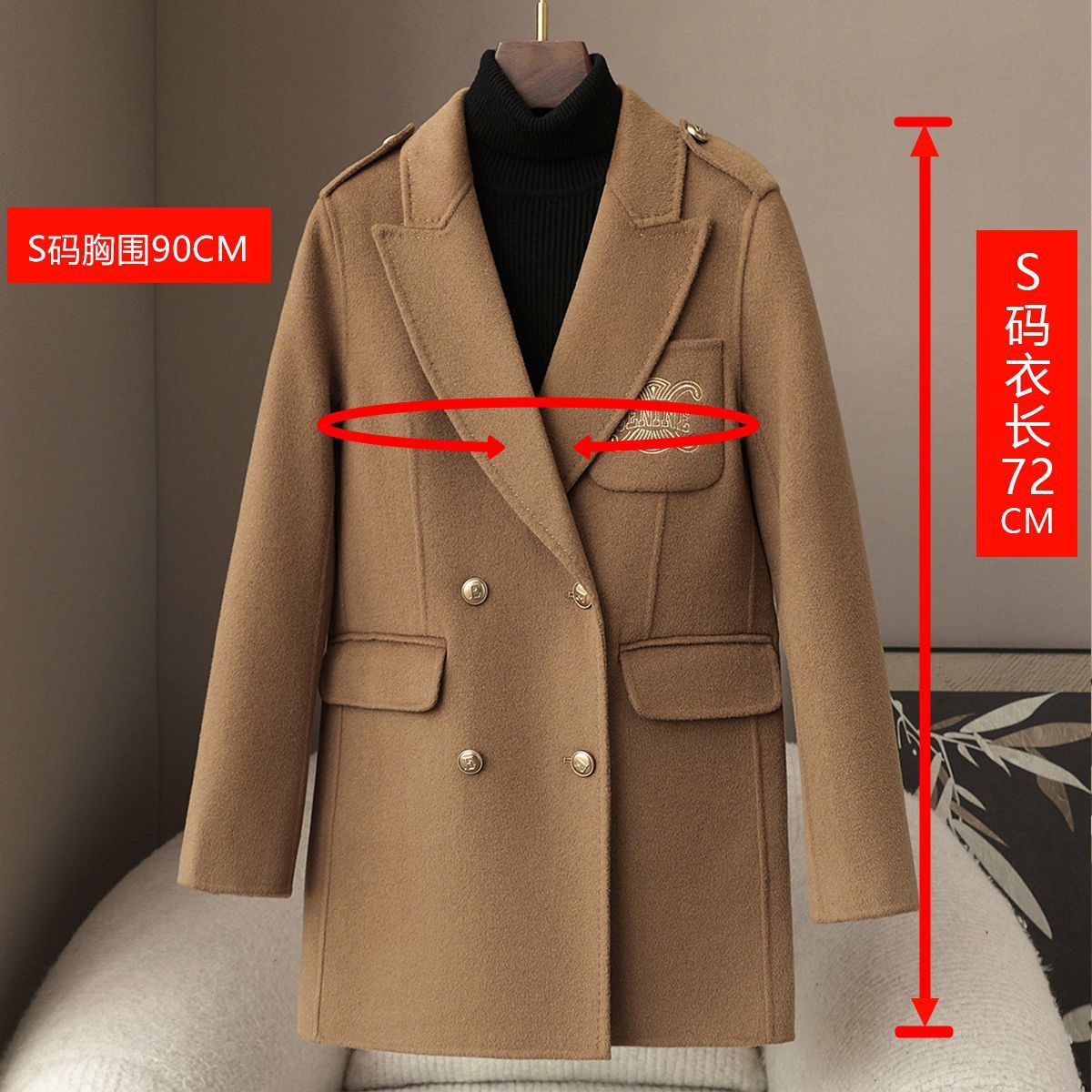 少量服饰春季新款10%羊绒西装领呢大衣女2025韩版中长款毛呢外套 投诉