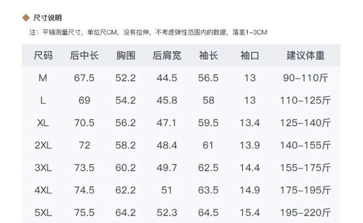 | 5XL 195-220斤 | ¥30575 | 1000件可售 |
