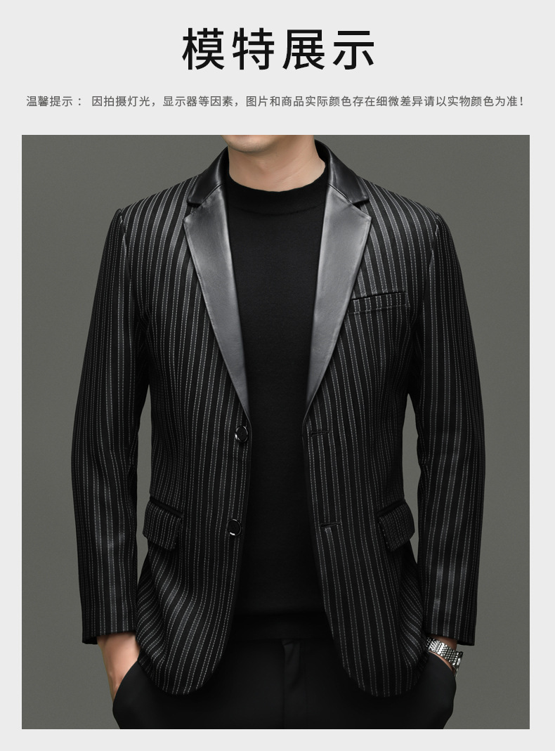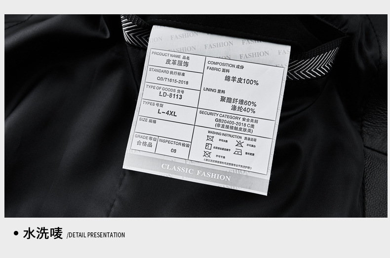 BG8113春秋款海宁真皮皮衣男绵羊皮印花西服商务休闲男装外套 投诉