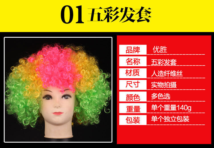 品牌: 优胜 是否进口: 否 品牌类型: 节派 型号: 028 适用人群: 儿童 处理工艺: 全手织 假发长度: 短发 可否染烫: 不可烫染 发丝材质: 高温丝 适用肤色: 任何肤色 适用脸型: 任何脸型 产地: 浙江 货号: 028 风格: 个性 功效: 修饰 假发发型: 短发 化妆品特性: 个性装扮 颜色: 白色,黄色,红色,紫色,绿色,蓝色,黑色 是否跨境出口专供货源: 否 是否有导购视频: 无
