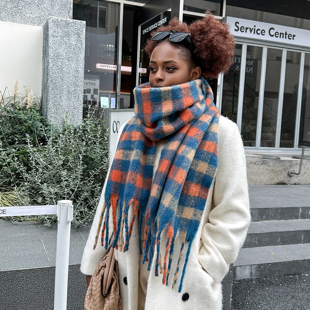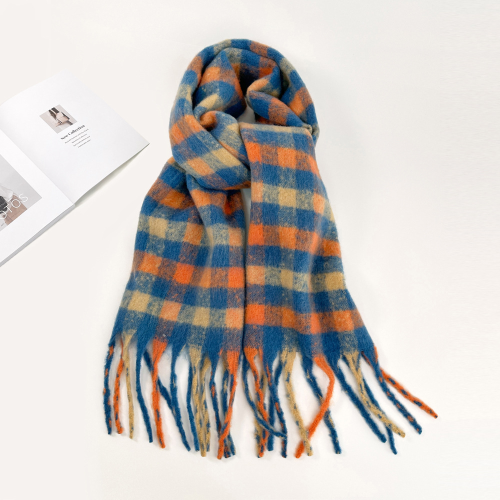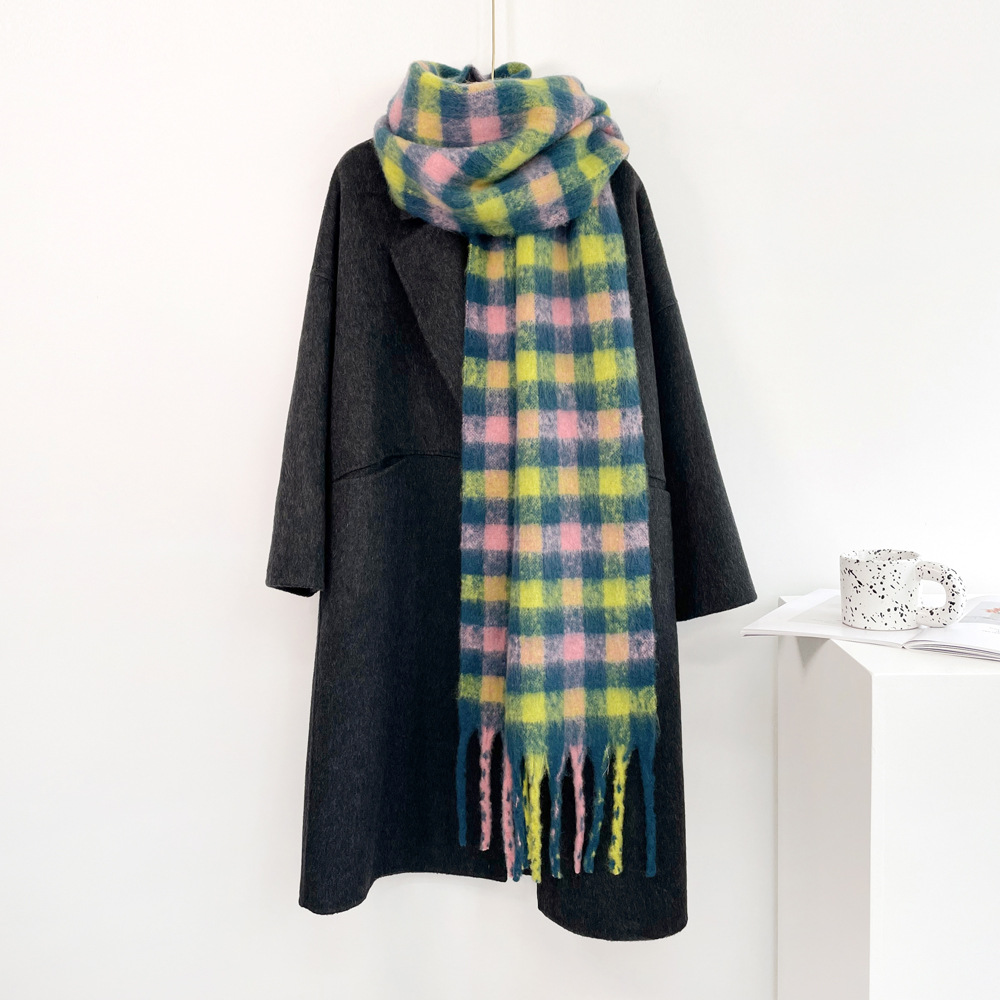 外贸彩色马海毛格子围巾批发女保暖披肩软糯百搭学生复古围脖保暖 投诉