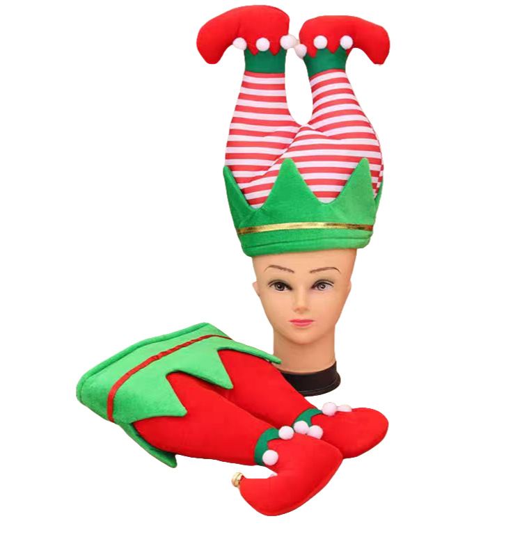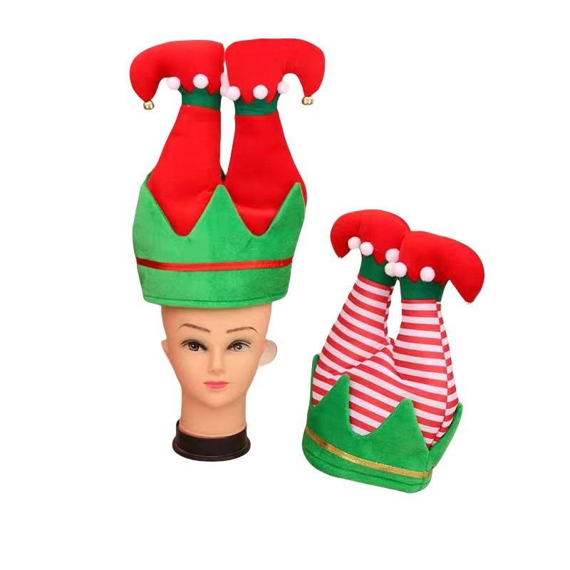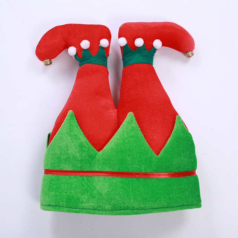 跨境新款圣诞帽创意精灵鞋帽子 绒布小丑帽 狂欢节派对装饰帽子