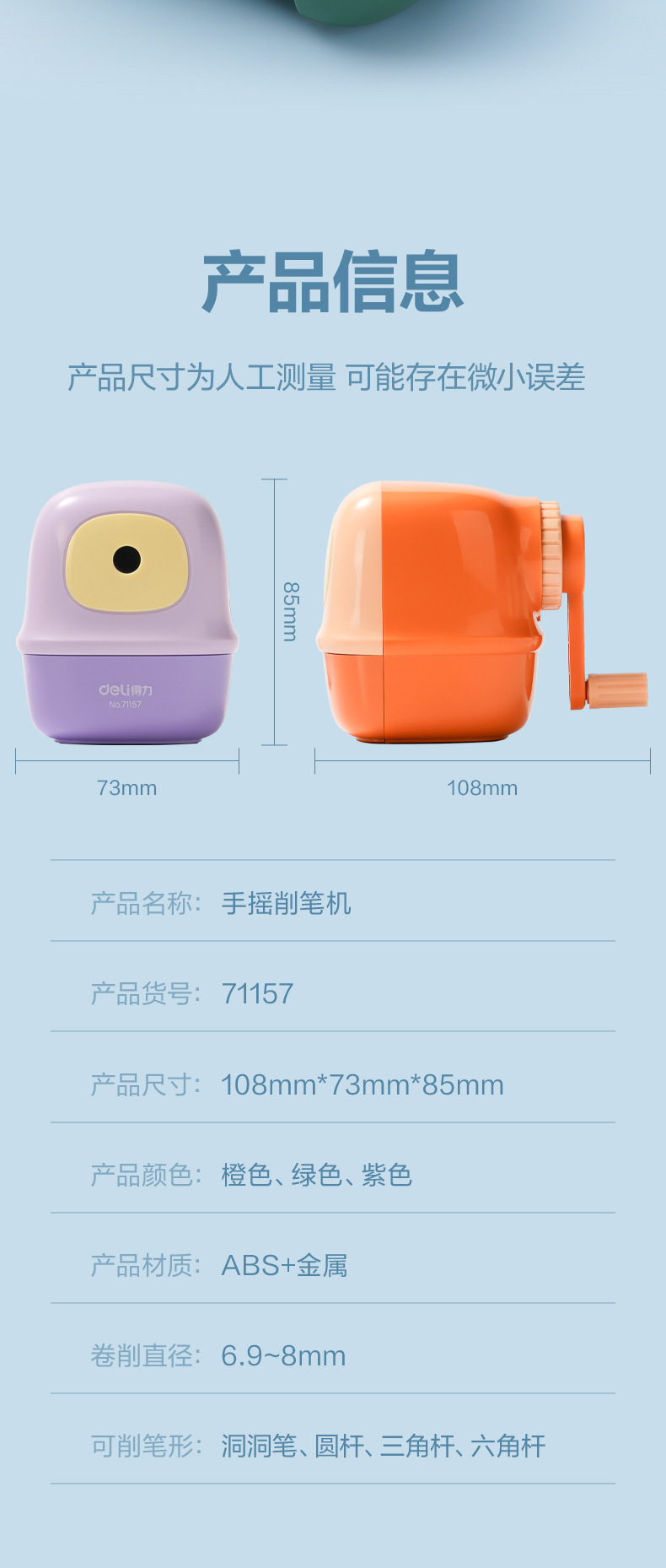 得力削笔机削笔器学生专用手摇可爱铅笔刀削笔器卷笔刀转笔刀批发 投诉