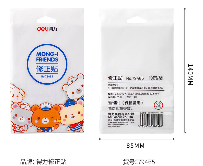 得力79465可爱修正贴小学生用涂改带改正纸修改错字贴纸改字改错