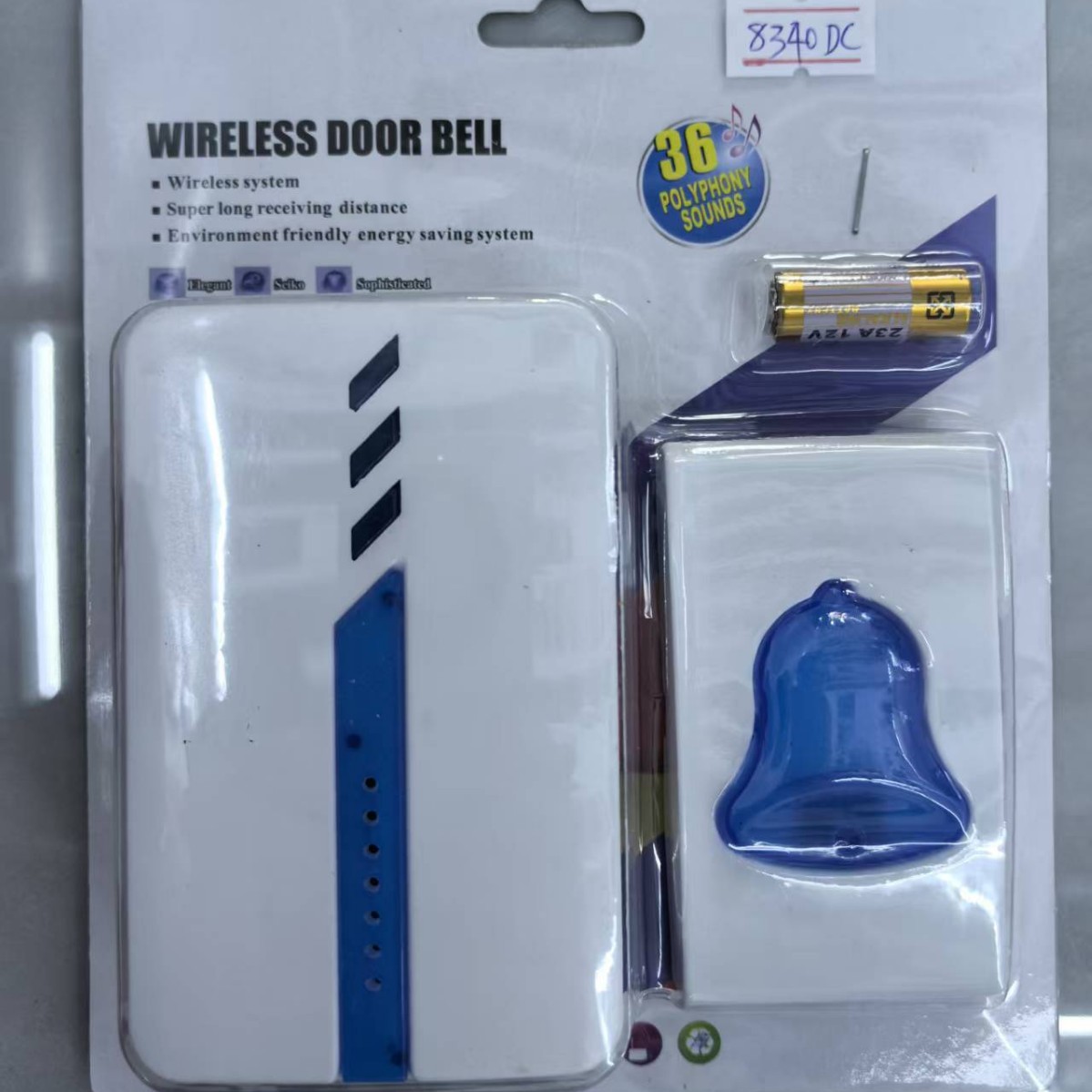 订货号: 36458 品牌: 鸿羚 货号: 9853DC 电源方式: 直流 电源电压: 3V 铃声: 38首 消耗功率: 5W 适用范围: 居家,工厂,学校等所需的各种场所 类型: 无线门铃 是否跨境出口专供货源: 是