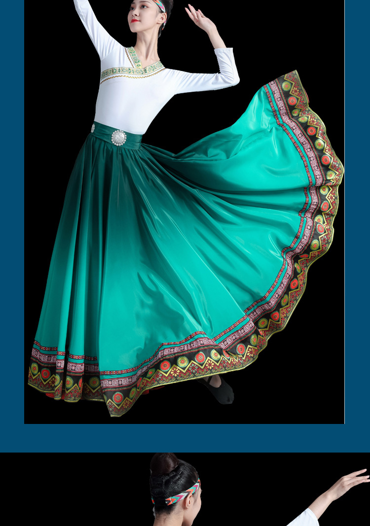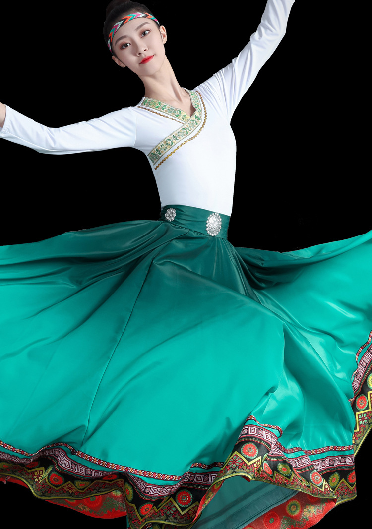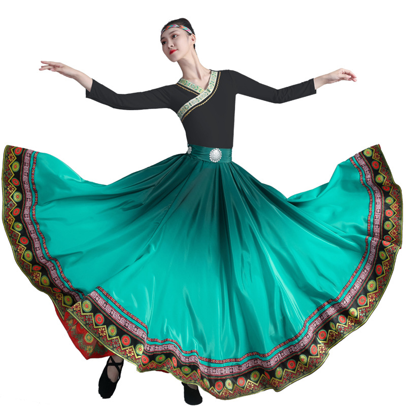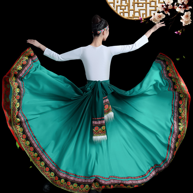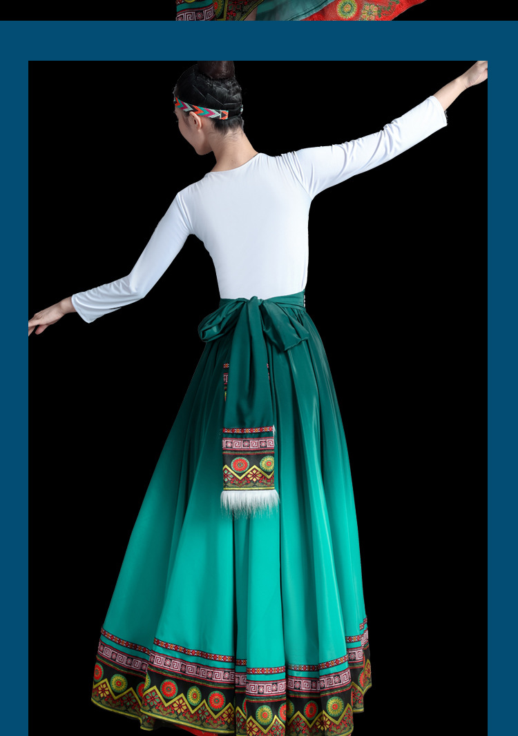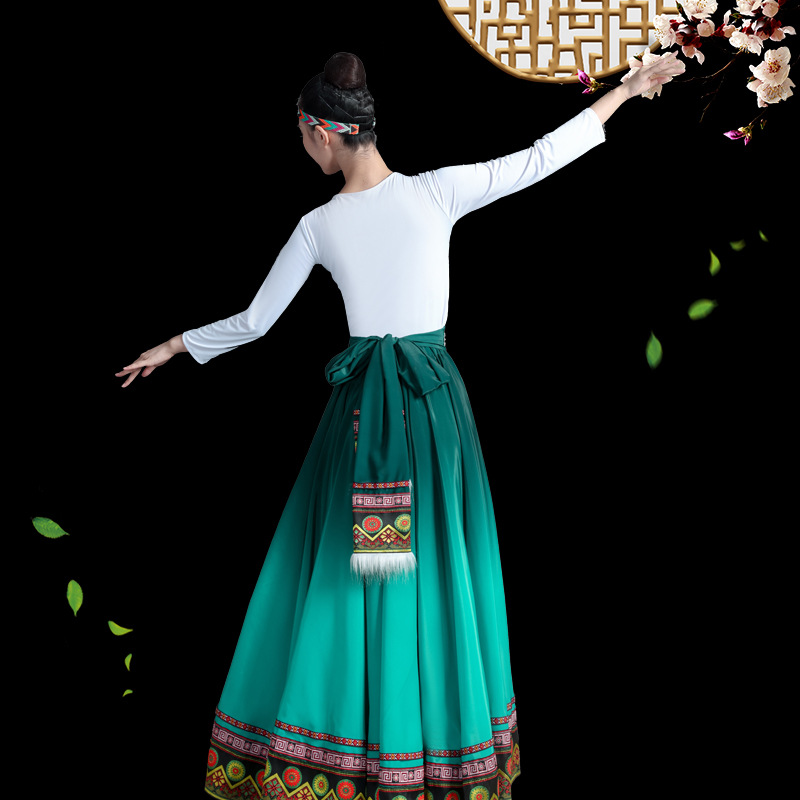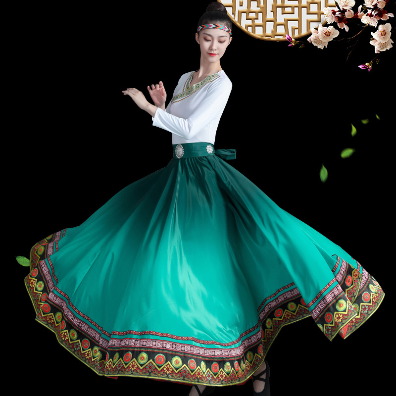 新款藏族服装女舞蹈演出服艺考蒙古少数民族广场舞大摆裙半身裙