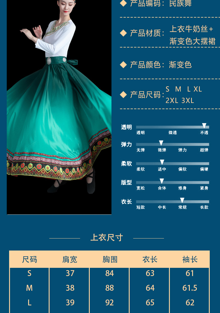新款藏族服装女舞蹈演出服艺考蒙古少数民族广场舞大摆裙半身裙 投诉