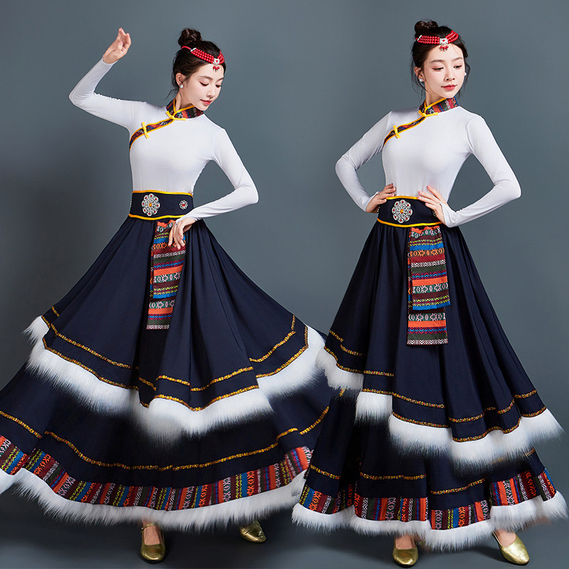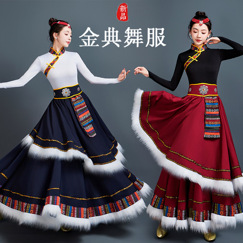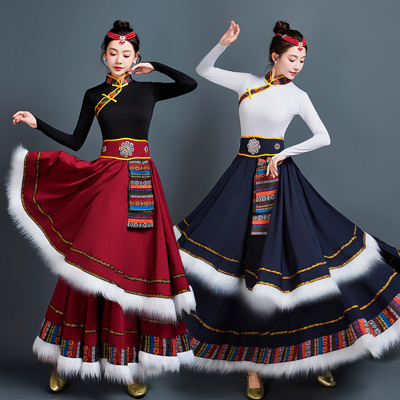 藏族舞蹈服女艺考半身长裙民族舞藏式练习广场舞大摆裙表演服套装