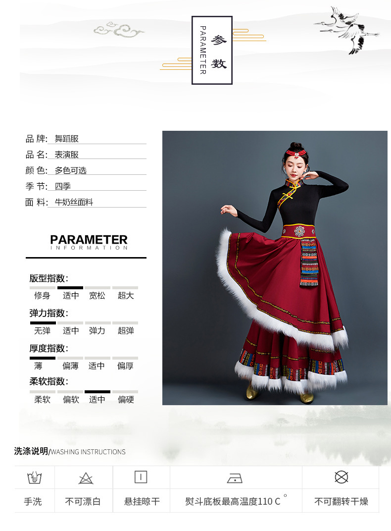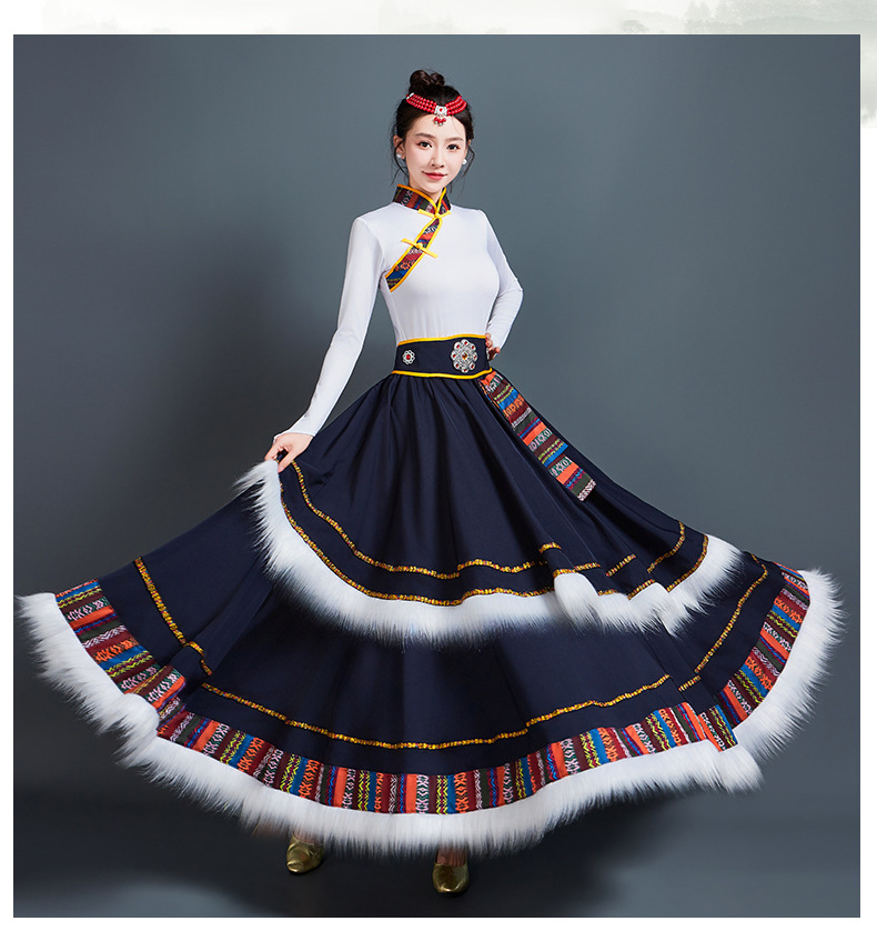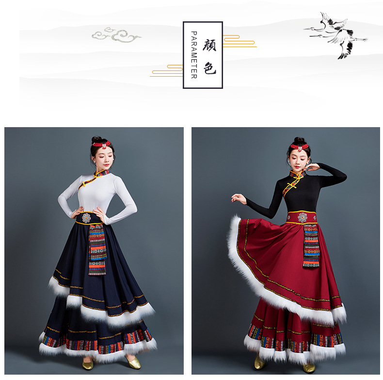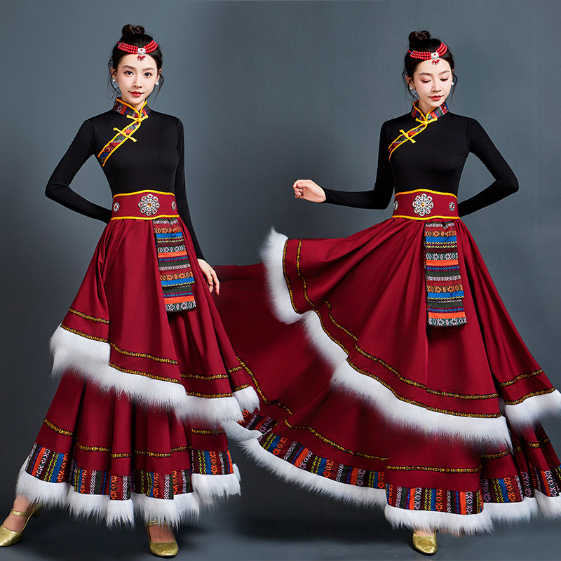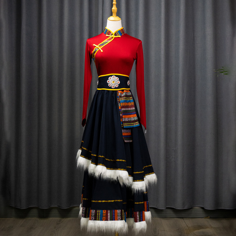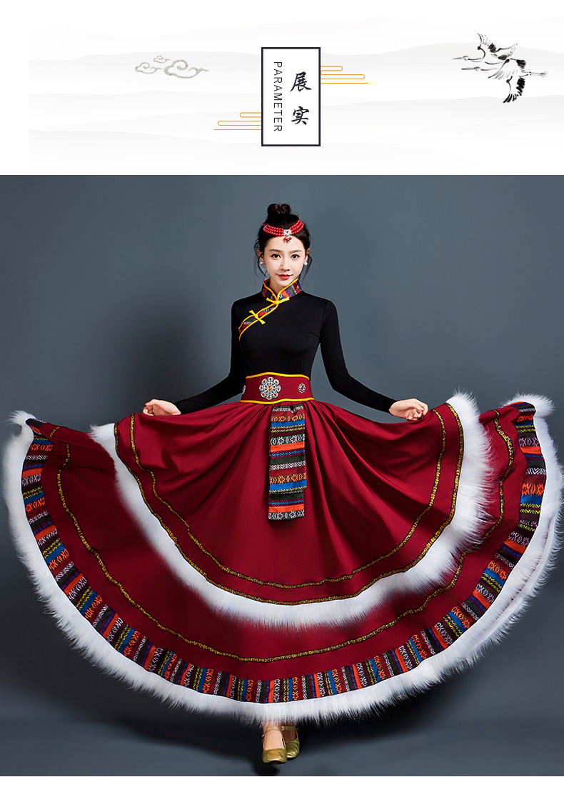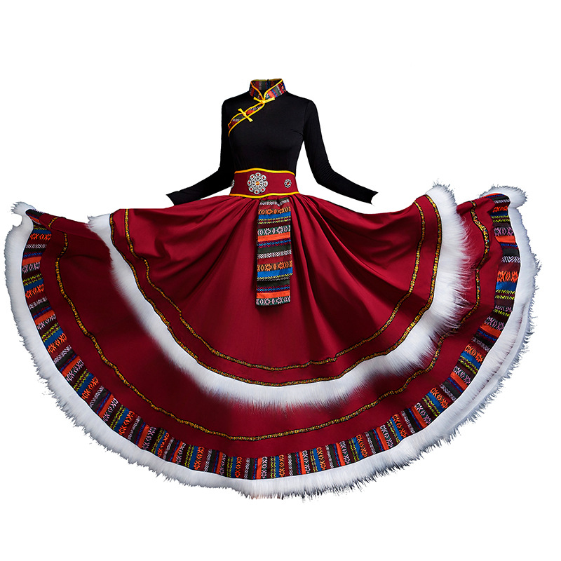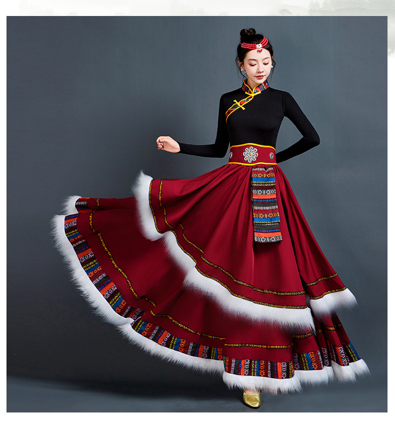 藏族舞蹈服女艺考半身长裙民族舞藏式练习广场舞大摆裙表演服套装 投诉