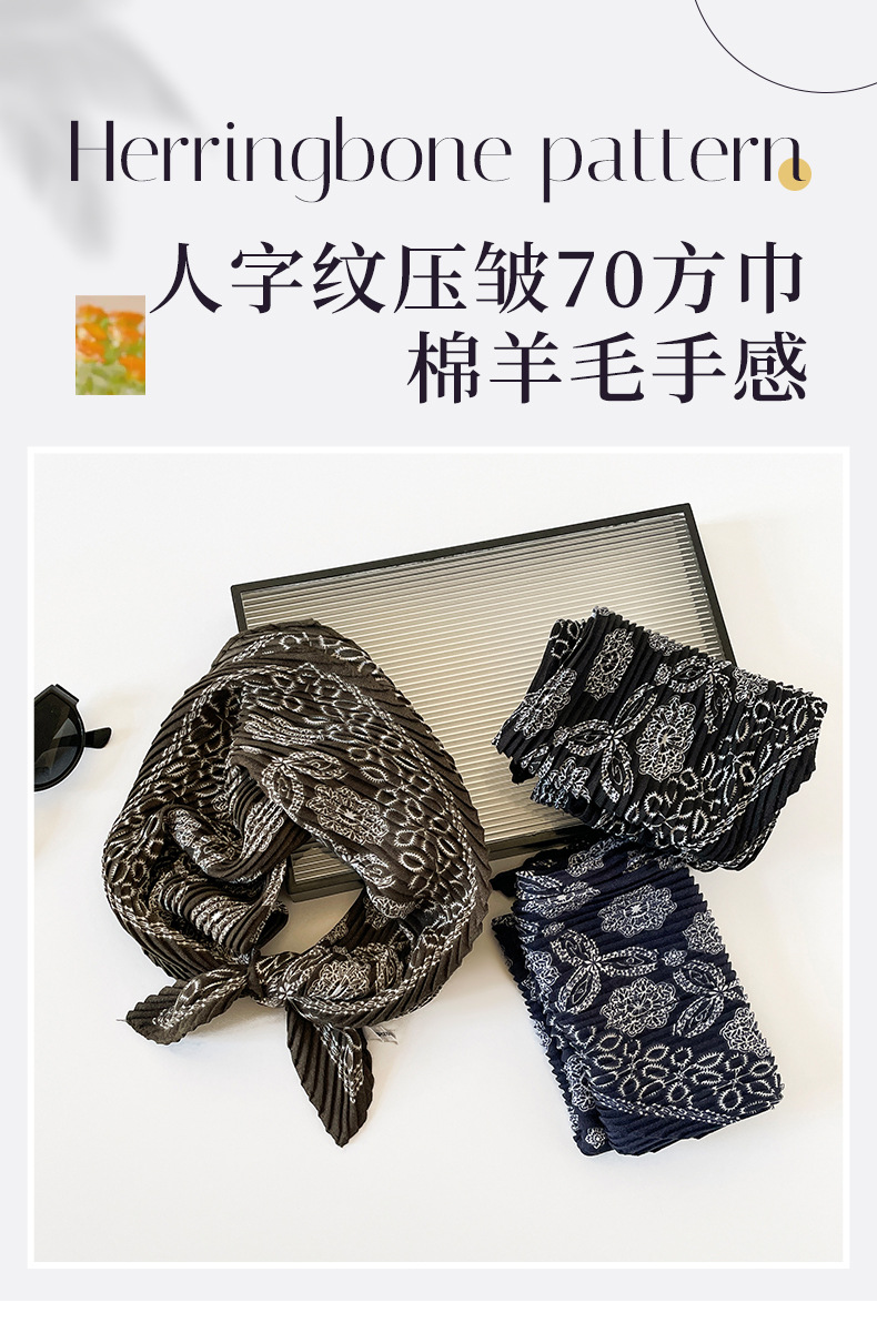 气质小方巾咖色褶皱设计感丝巾秋季服装搭配丝巾头巾多用护颈领巾 投诉