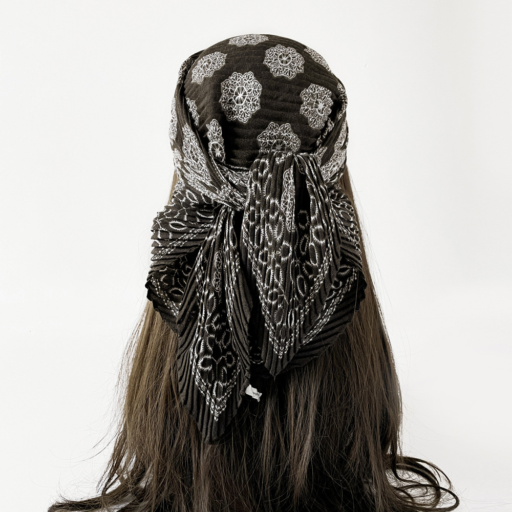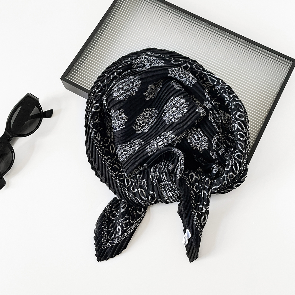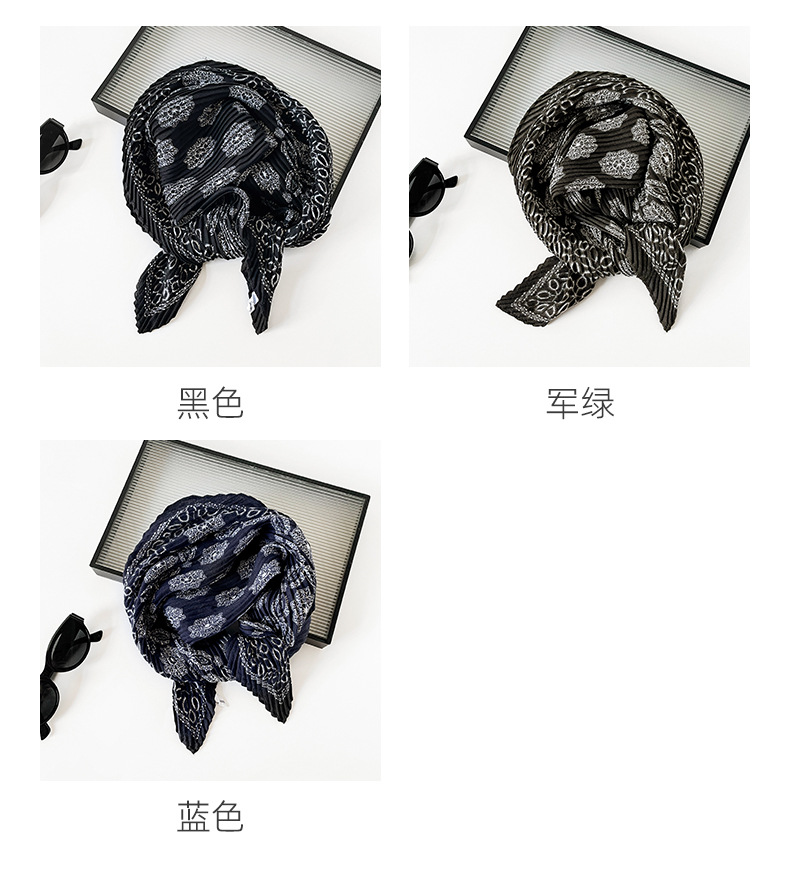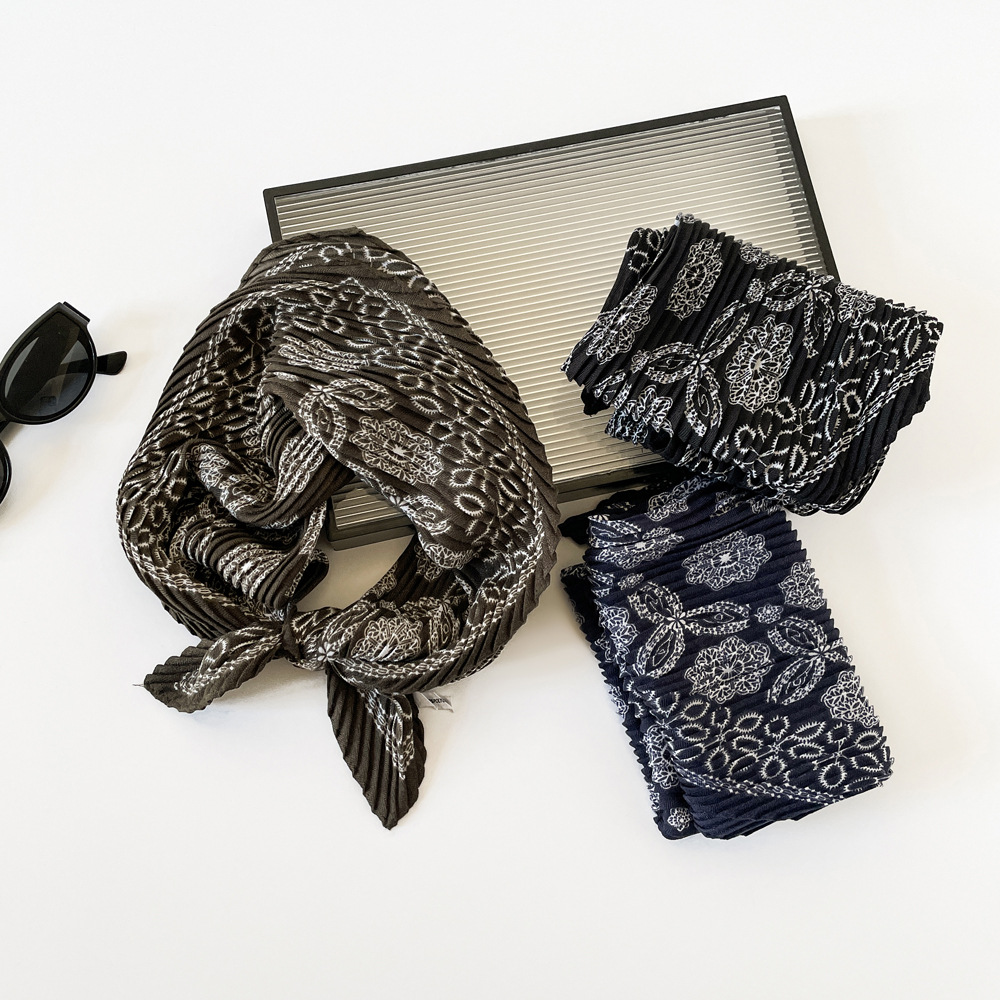 气质小方巾咖色褶皱设计感丝巾秋季服装搭配丝巾头巾多用护颈领巾
