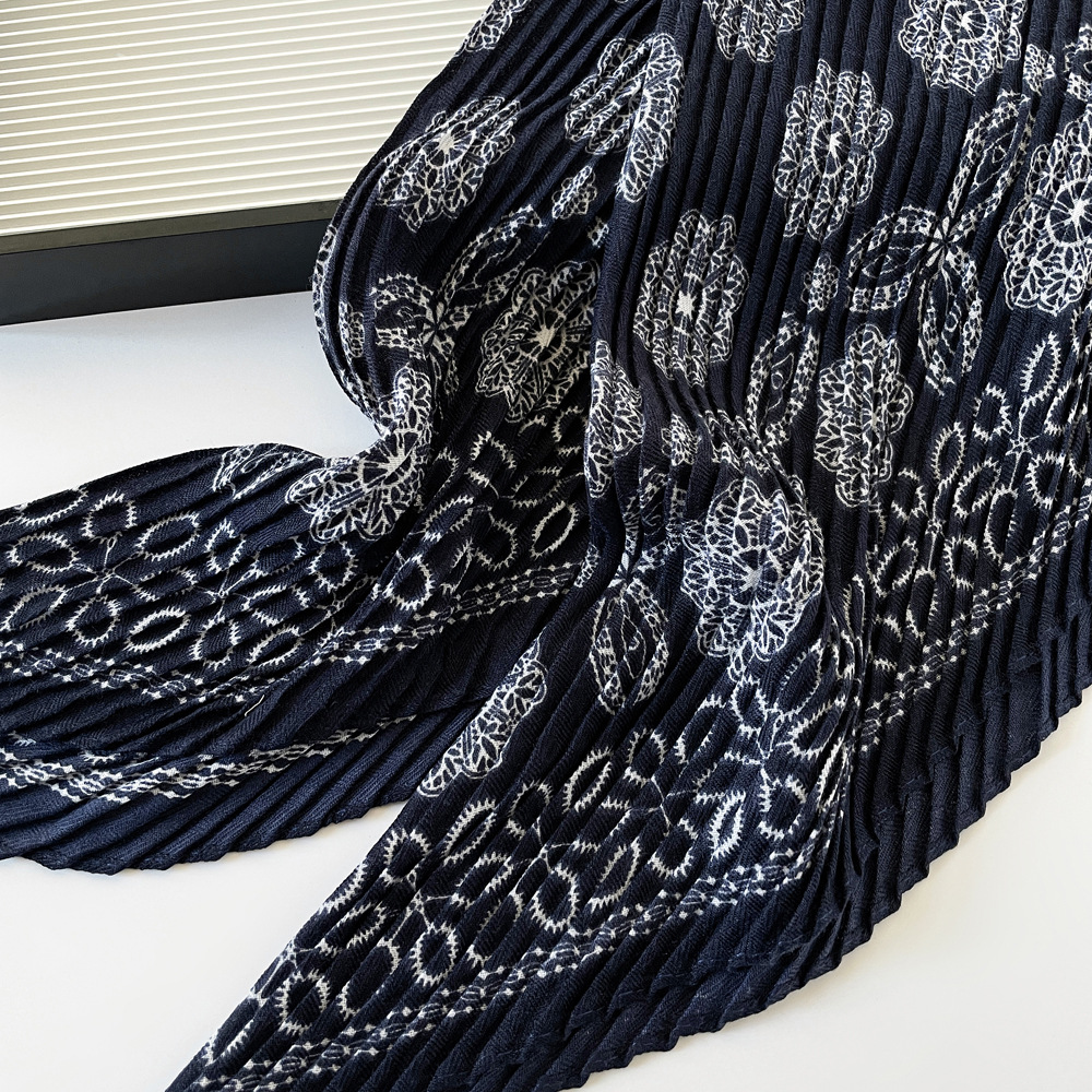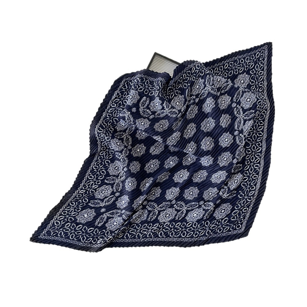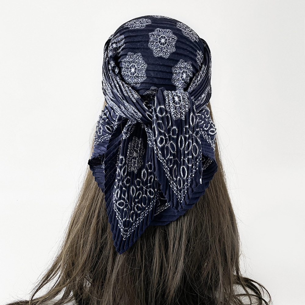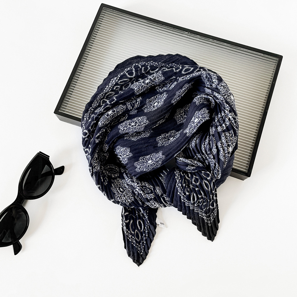 气质小方巾咖色褶皱设计感丝巾秋季服装搭配丝巾头巾多用护颈领巾