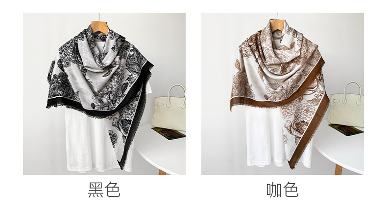 秋冬棉麻手感围巾新款散须方巾时尚气质时尚简约花卉印花披肩批发 投诉