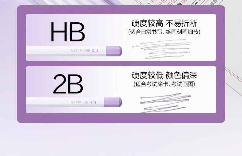 品牌: Deli/得力 货号: NS749 是否可活动: 是 外壳材质: 木制 铅芯颜色: 1盒【葡萄香气】 铅芯硬度: HB,2B 是否专利货源: 否