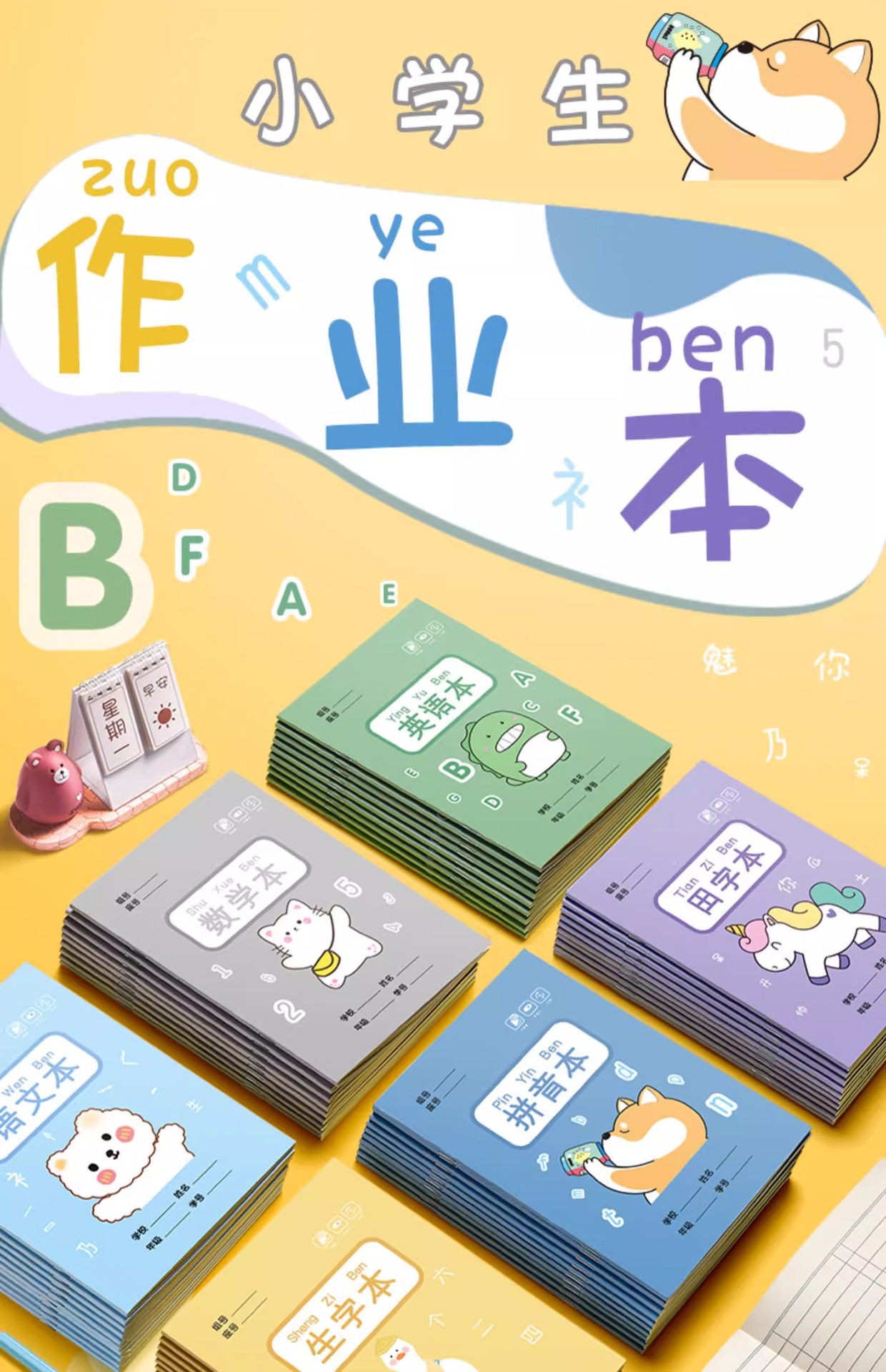 产品类别: 作业本 品牌: 咔巴熊 封面材质: 纸质 封面颜色: 数学本(14张),拼音本(14张),语文 货号: KBX-5674 装订: 骑马订 内文材质: 原木浆 内文纸张克重: 80G 规格: 默认 笔记本风格: 11408890