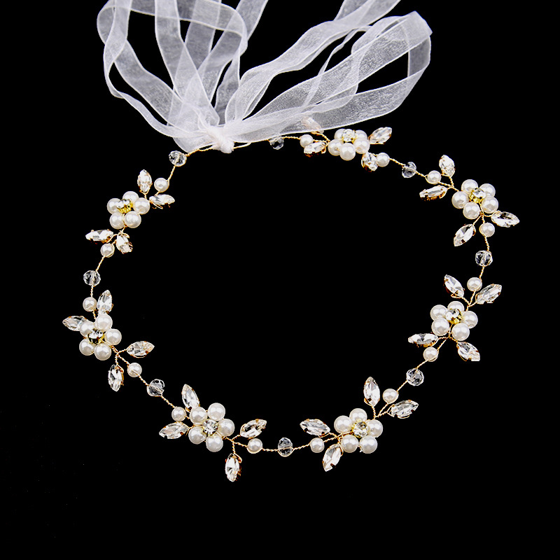欧美新娘头饰手工水钻发链新娘饰品结婚配饰珍珠皇冠盘发发带配饰