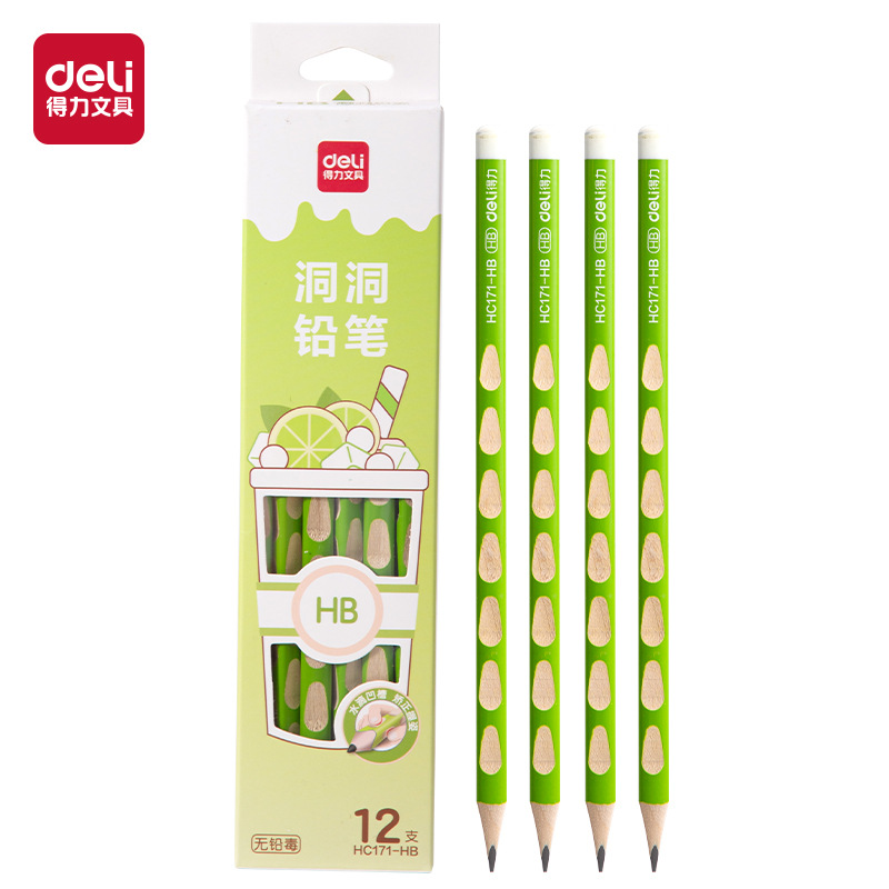 得力HC171-HB奶茶洞洞书写铅笔HB/2B(12支/盒)学生铅笔文具用品