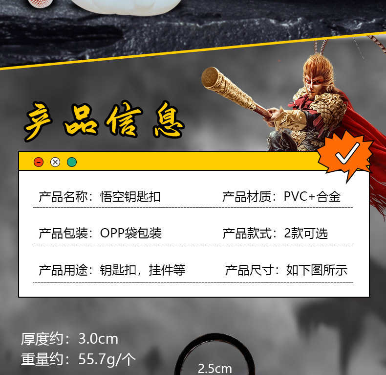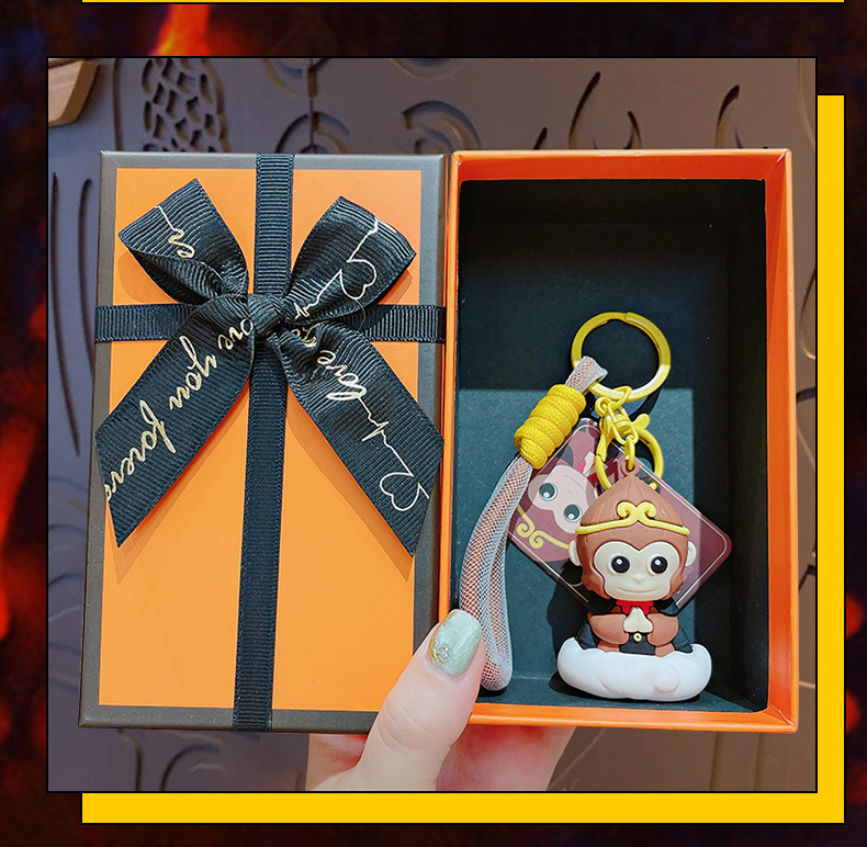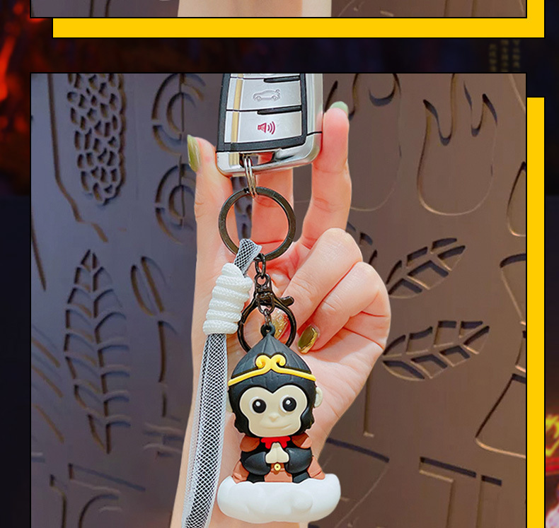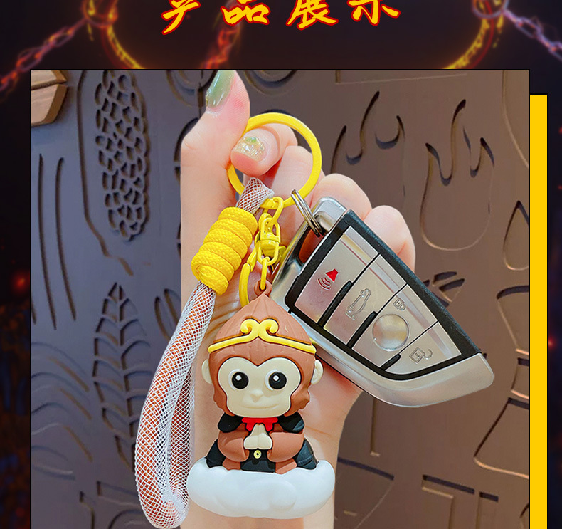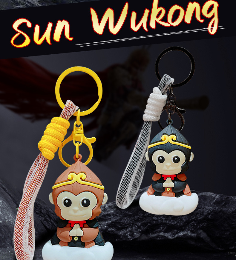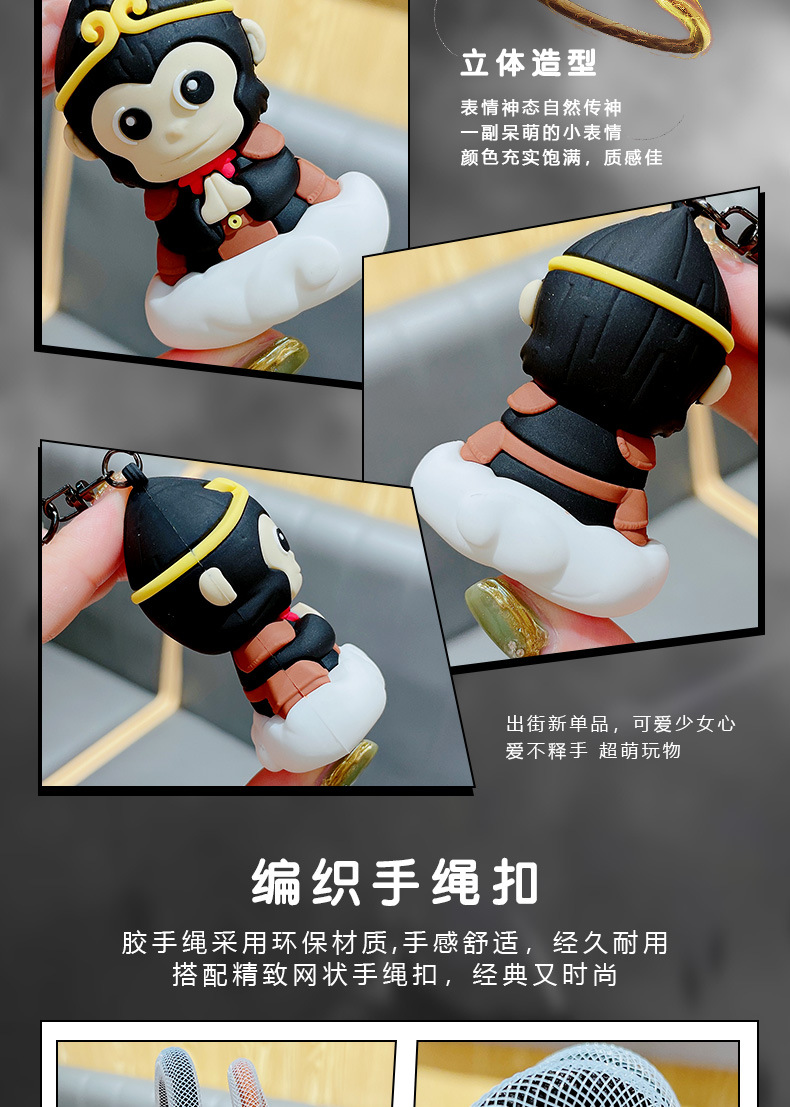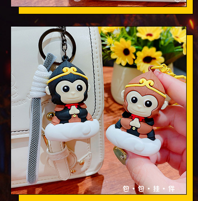 钥匙配饰分类: 钥匙扣 包装: 独立包装 材质: PVC+合金 适用送礼场合: 婚庆,生日,满月,旅游纪念,毕业,乔迁, 是否专利货源: 否 颜色: 悟空钥匙扣-黑色,悟空钥匙扣-棕色 适用送礼关系: 晚辈,情侣,夫妻,同事,朋友,长辈,孩子 送礼用途: 积分换购礼品,商务礼品,广告礼品,促销赠 是否属于礼品: 是,商务礼品 是否IP授权: 否 风格: 卡通 适用节日: 圣诞节,情人节,春节,父亲节,母亲节,教 钥匙扣: 钥匙扣挂件