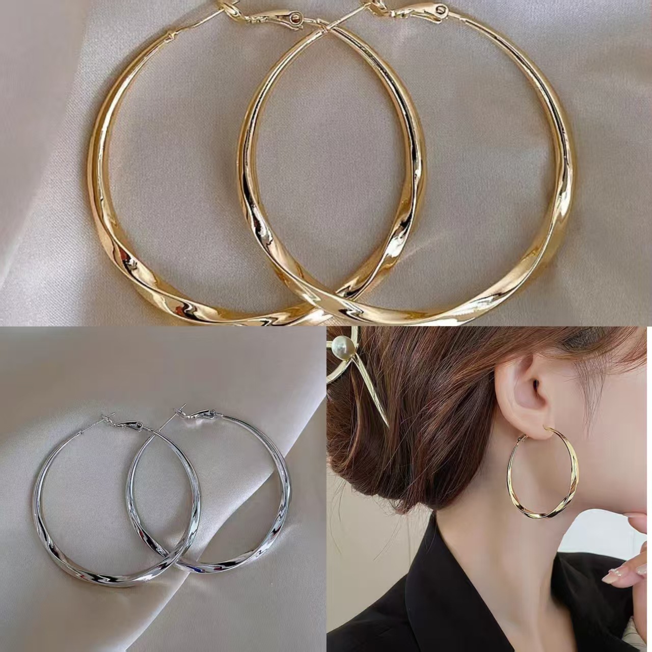 欧美跨境扭曲大圈耳圈耳环女2024新款小众夸张感气质轻奢素圈耳饰 投诉