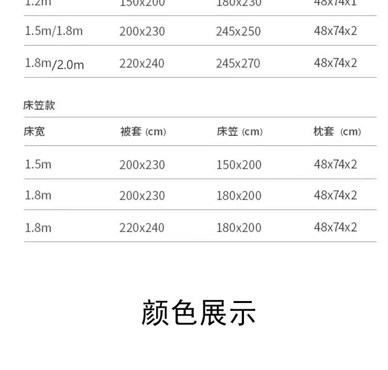| 1.8m加大床笠款四件套【被套220X240cm】 | ¥47760 | 500套可售 |