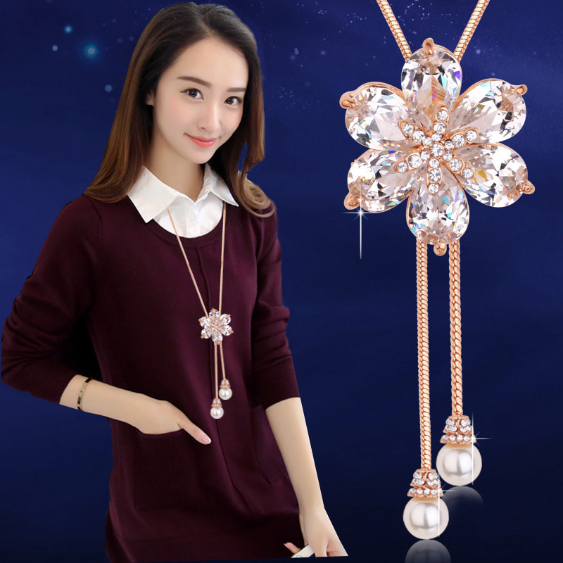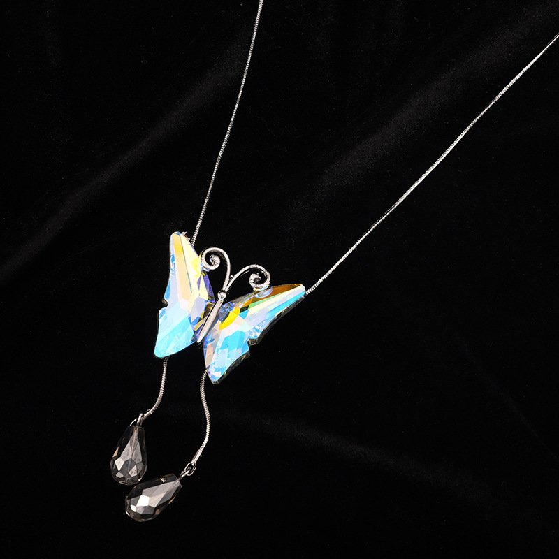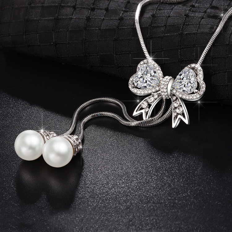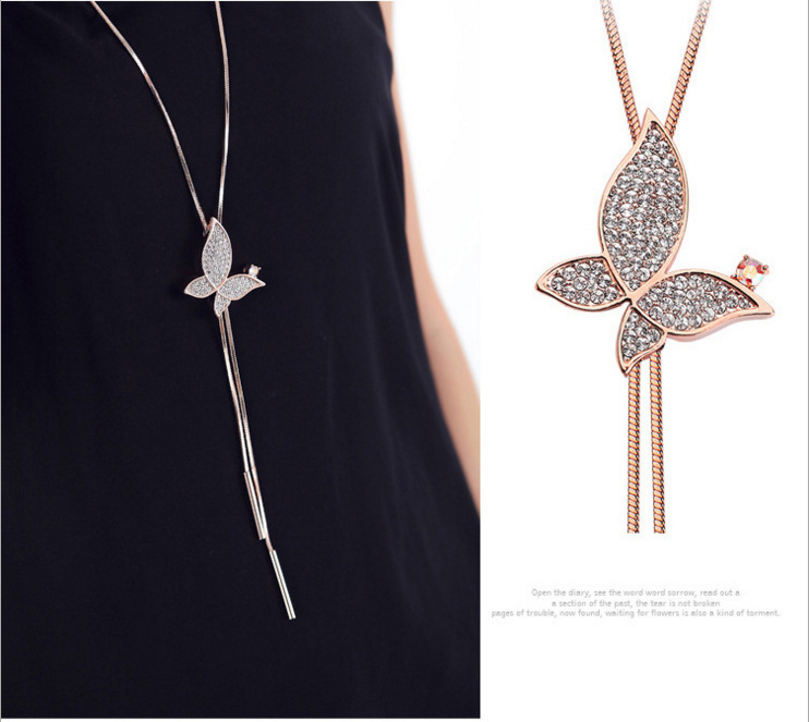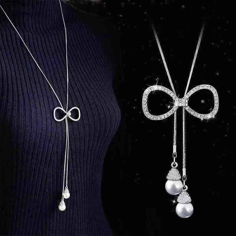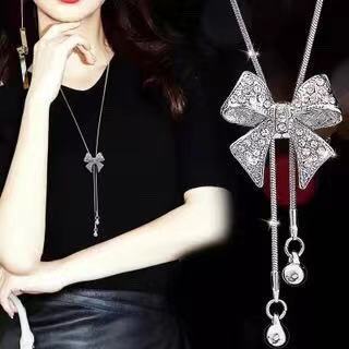 新款水晶项链蝴蝶结毛衣链