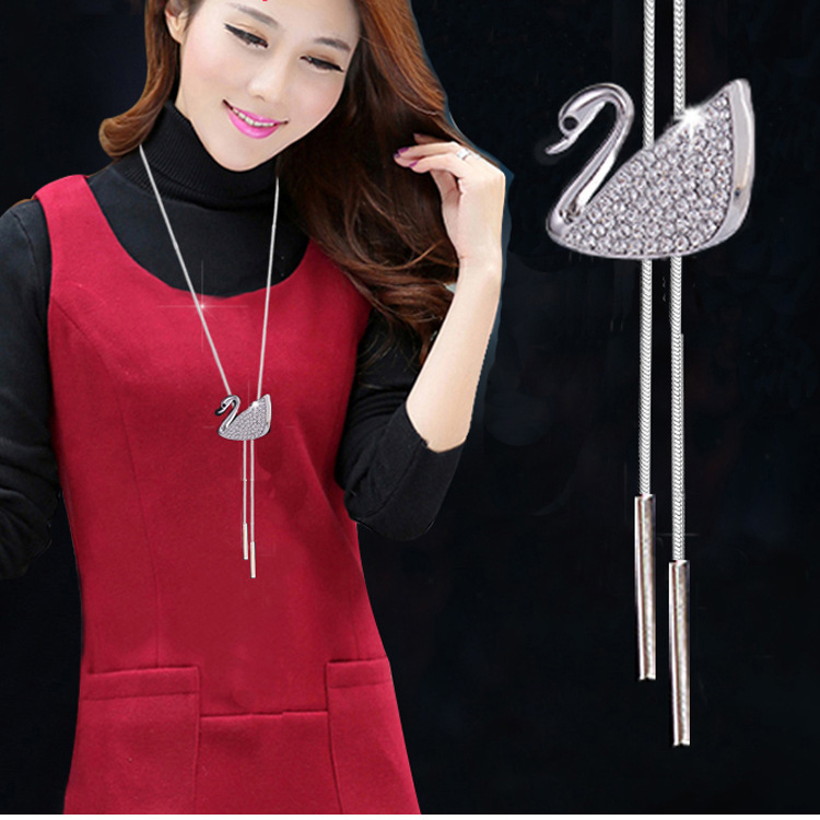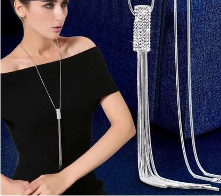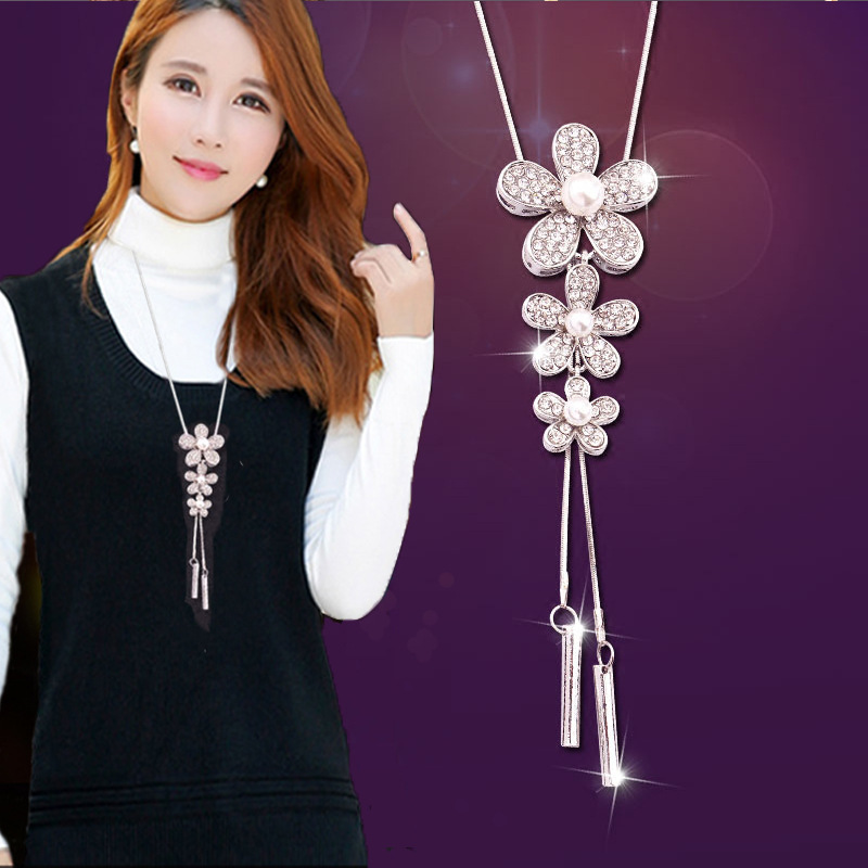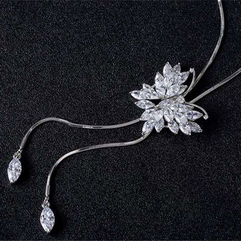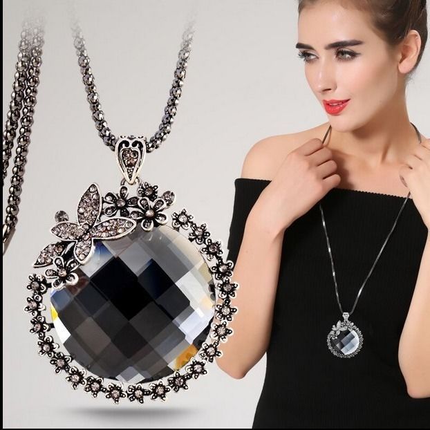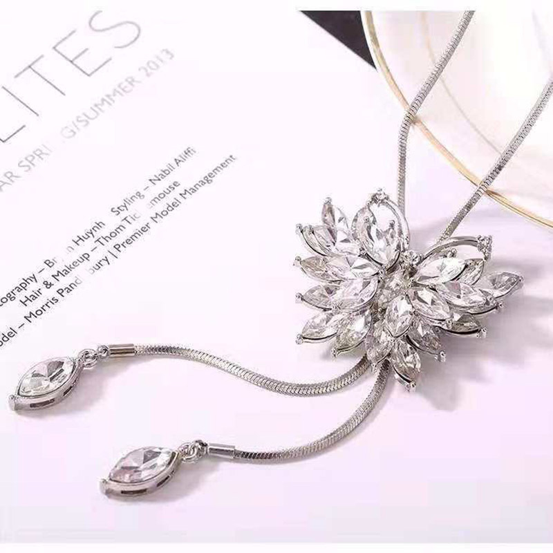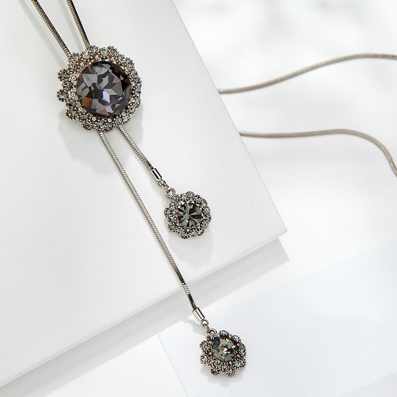 新款水晶项链蝴蝶结毛衣链