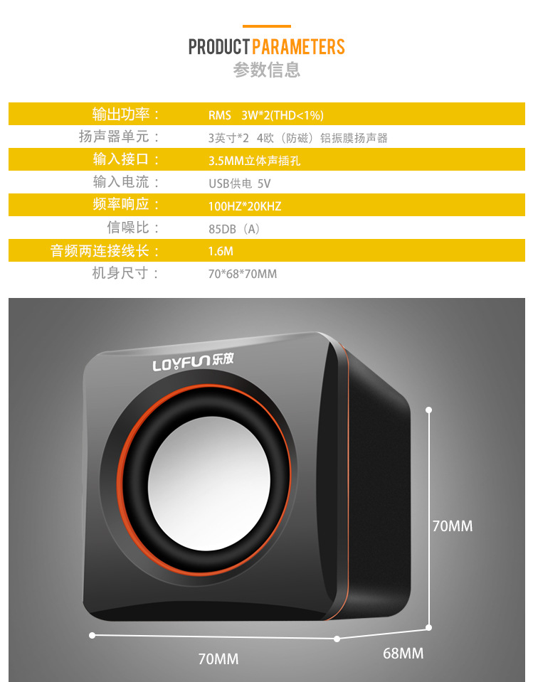 LOYFUN乐放 LF-701迷你办公小音箱 笔记本台式电脑音响 带