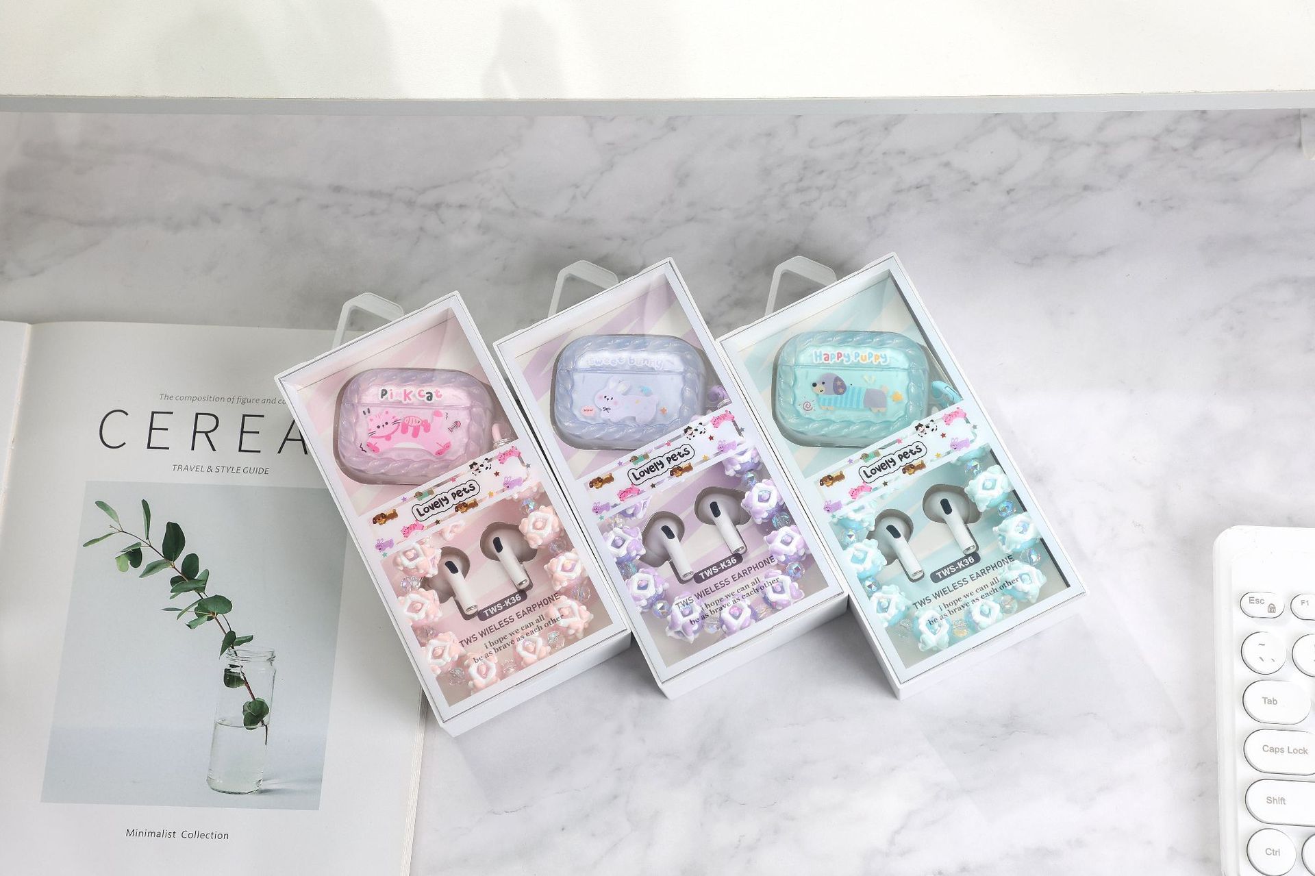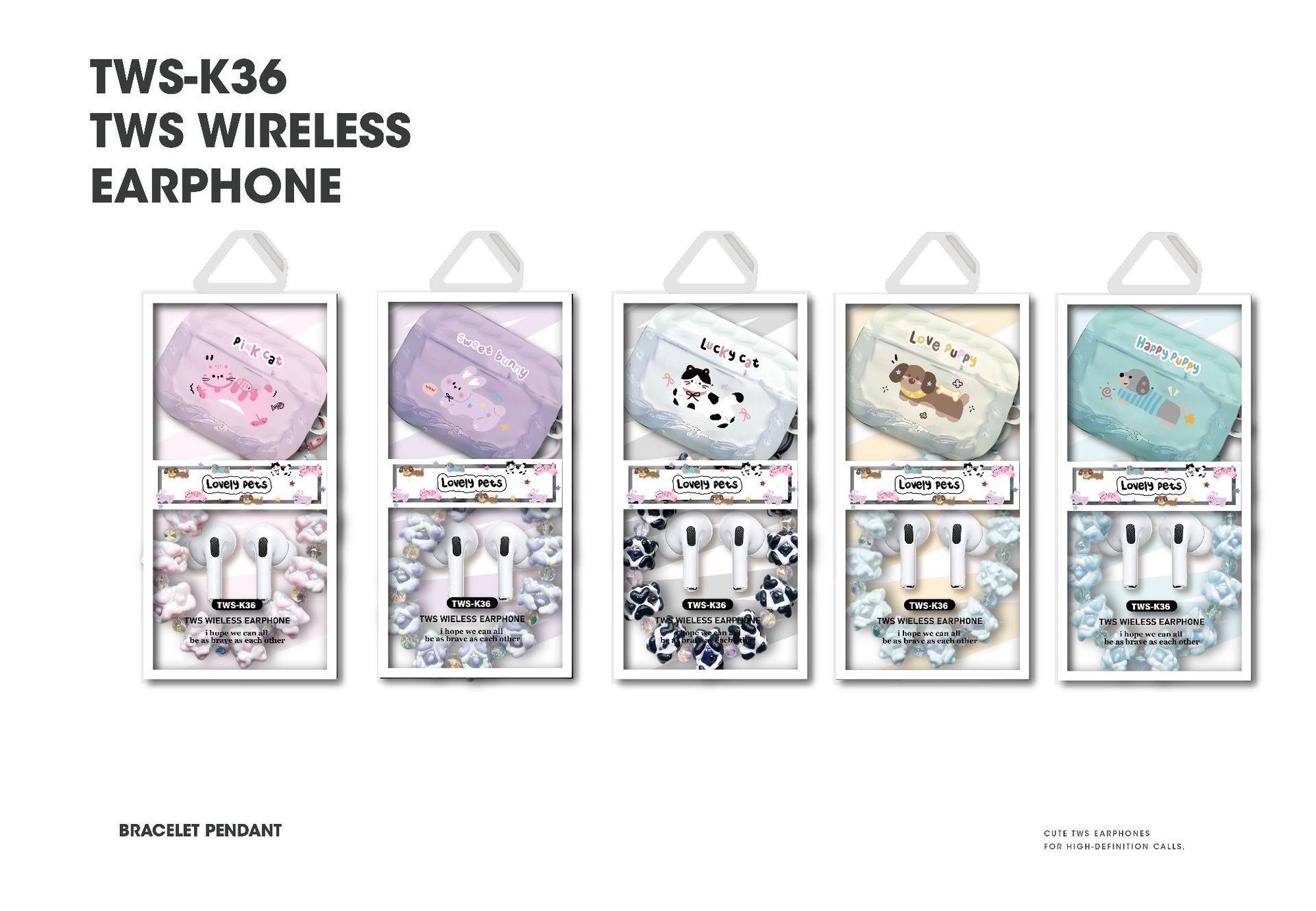 萌宠保护壳精致手机珠入耳式蓝牙耳机
