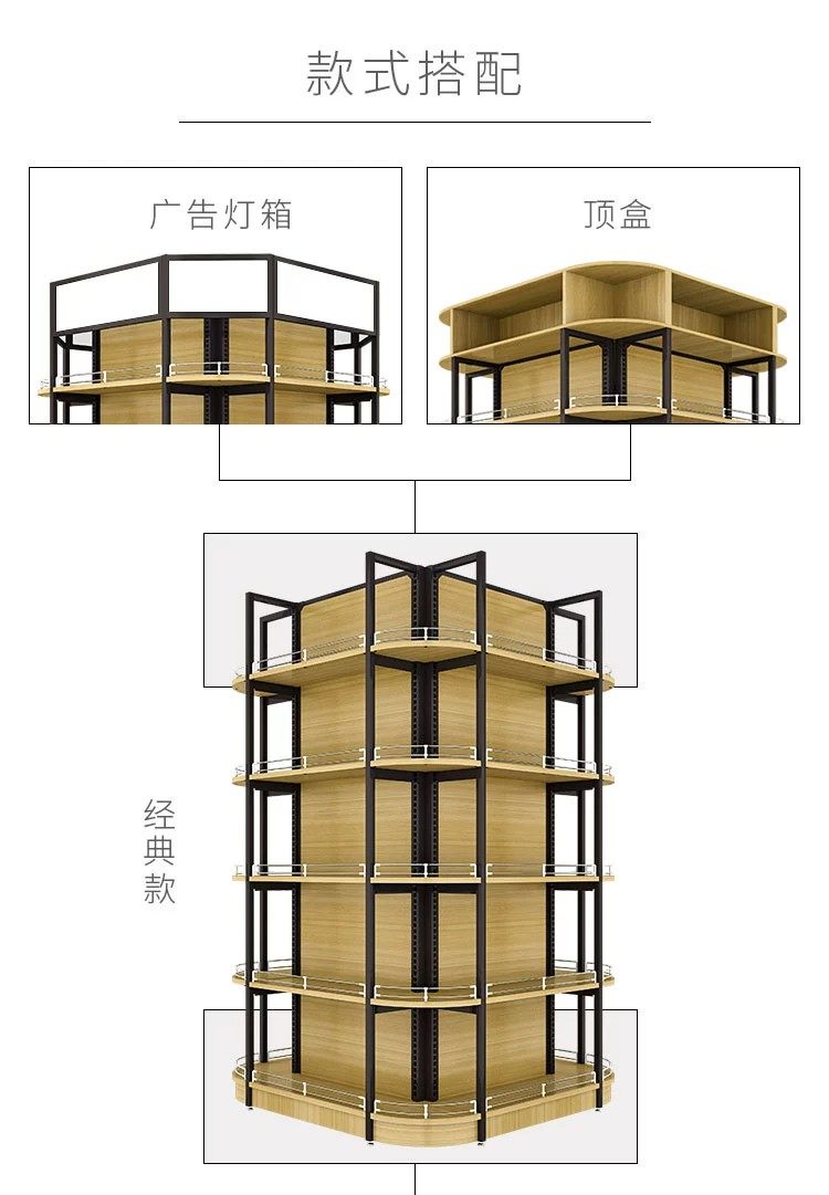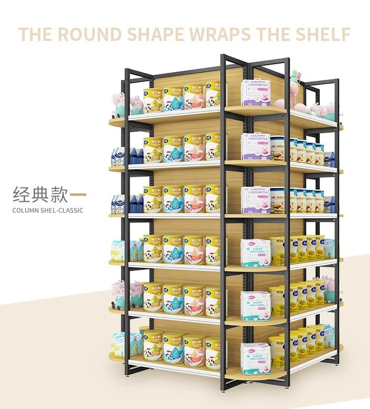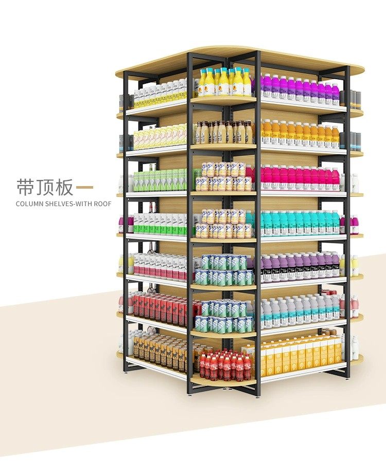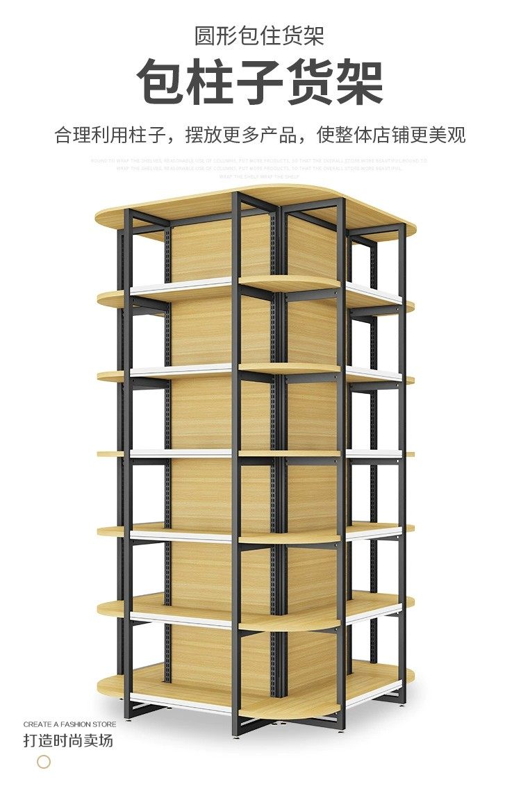 钢木组合包柱子货架超市便利店中间多层围柱货架四向立体四面展架 English | 投诉