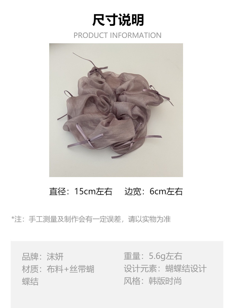 产品类别: 大肠发圈 材质: 布料 货号: 3018Q 品牌: 沫妍 处理工艺: 手工 产地: 义乌 主要下游平台: 淘宝,京东,ebay,PDD,亚马逊,w 颜色: 米色,黑色,紫色 有可授权的自有品牌: 是 是否跨境出口专供货源: 是 流行元素: 褶皱,蝴蝶结 上市年份/季节: 2024年夏季 风格: 韩版韩式 款式: 高弹力 风格分类: 清新甜美 主要销售地区: 非洲,欧洲,南美,东南亚,北美,东北亚, 流行元素分类: 形状/图案