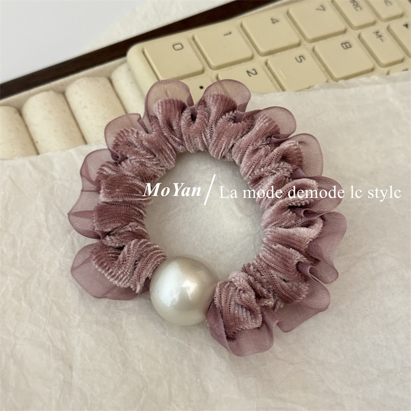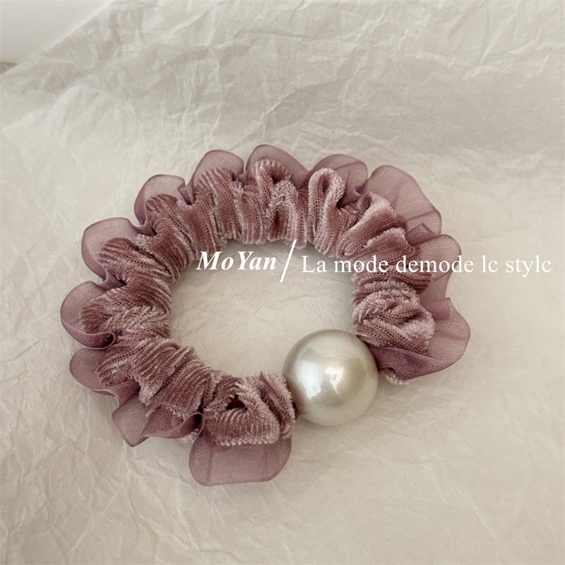 丝绒珍珠花边小肠发圈高级感头绳扎马尾丸子头发绳高弹力耐用皮筋 English | 投诉
