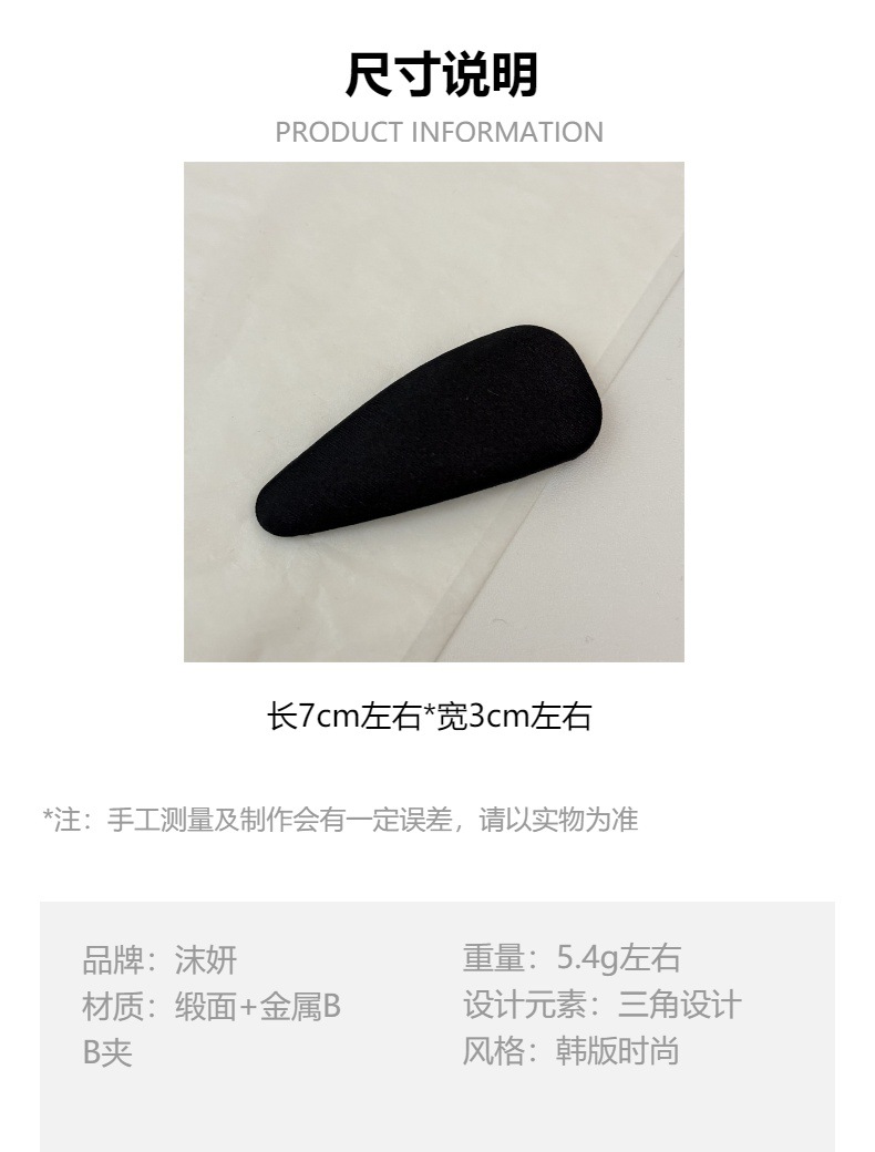 韩版早春气质缎面三角发夹纯色简约百搭发卡bb夹网红刘海侧边夹子 English | 投诉