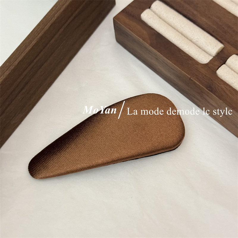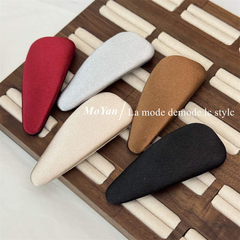 材质: 缎面 货号: 0813J 品牌: 沫妍 样式: 三角缎面BB夹 处理工艺: 手工 发夹分类: BB夹 产地: 义乌 主要下游平台: 淘宝,京东,ebay,PDD,亚马逊,w 颜色: 黑色,银灰,香槟,酒红,咖色 有可授权的自有品牌: 是 是否跨境出口专供货源: 是 流行元素: 三角形 上市年份/季节: 2025年春季 风格: 复古 风格分类: 文艺复古 主要销售地区: 非洲,欧洲,南美,东南亚,北美,东北亚, 适用人群: 女式 流行元素分类: 几何