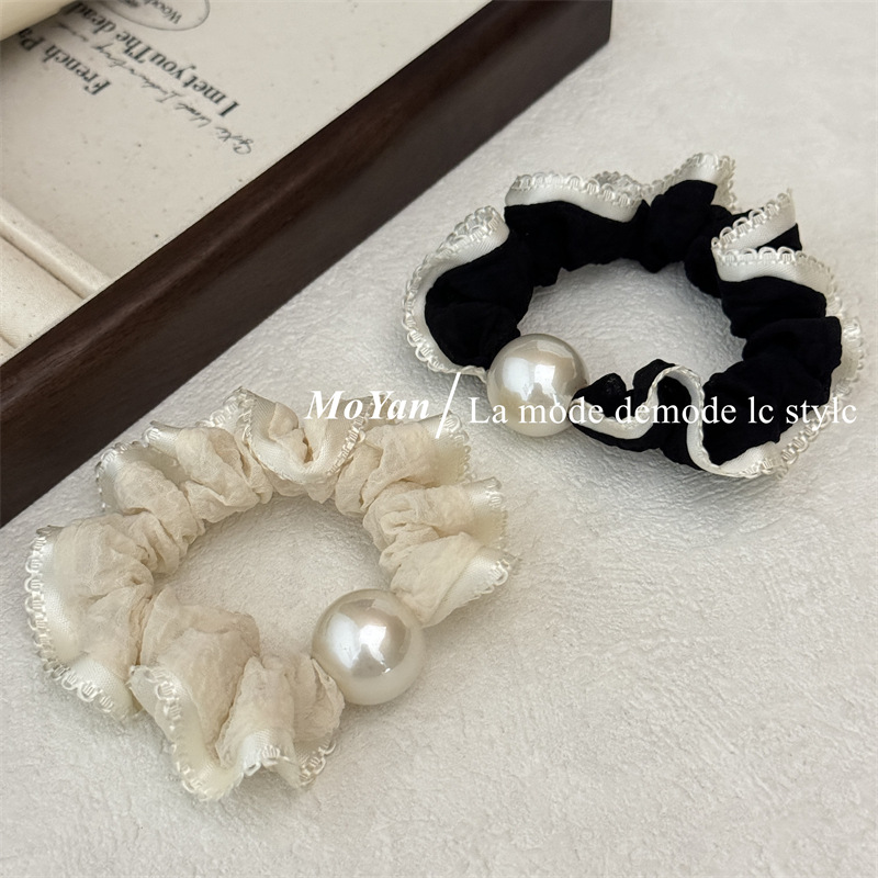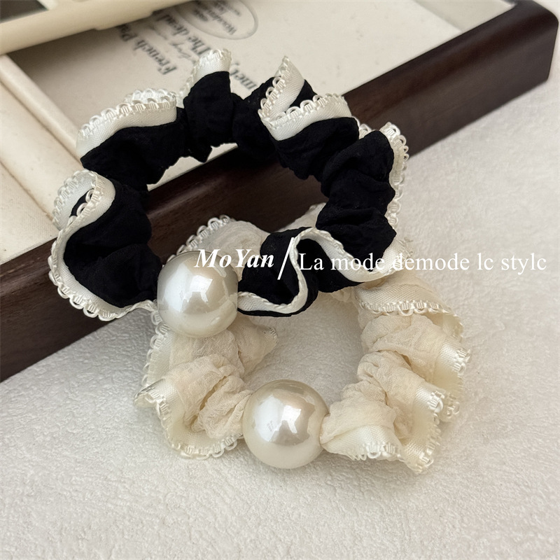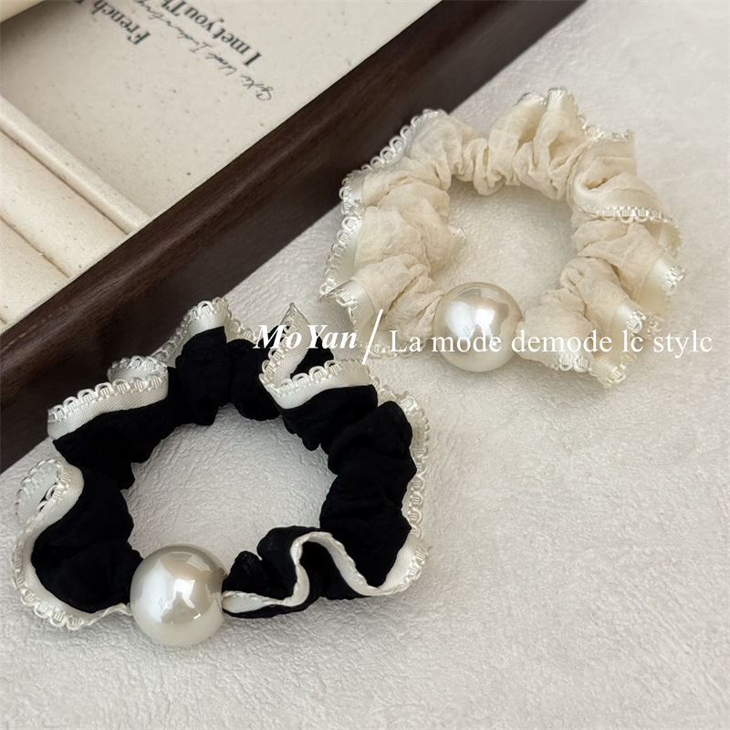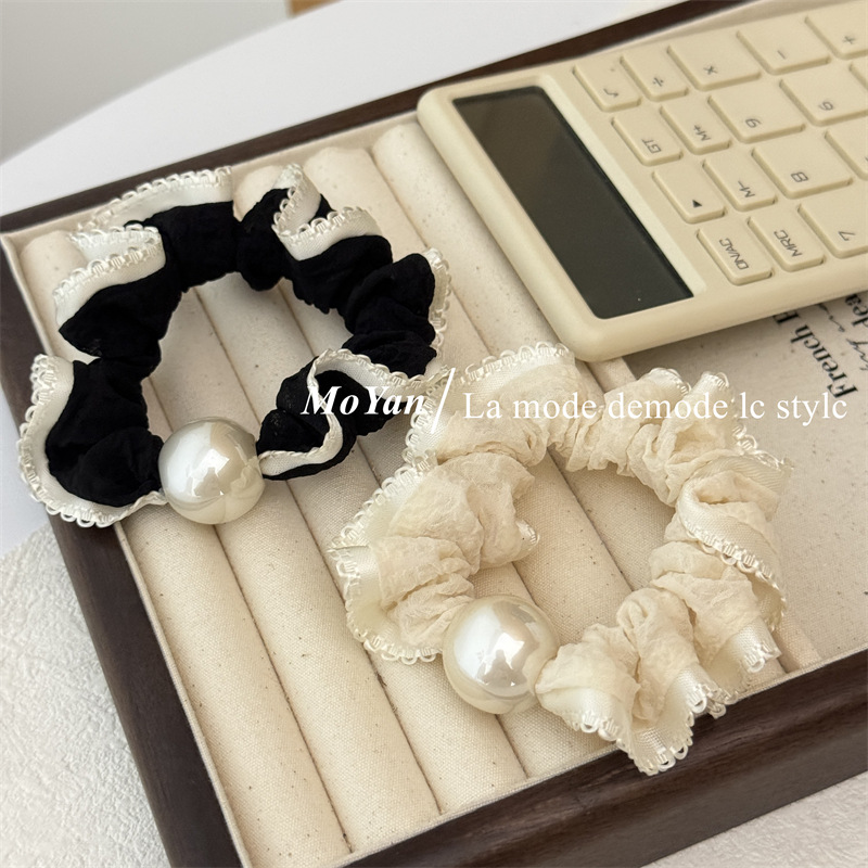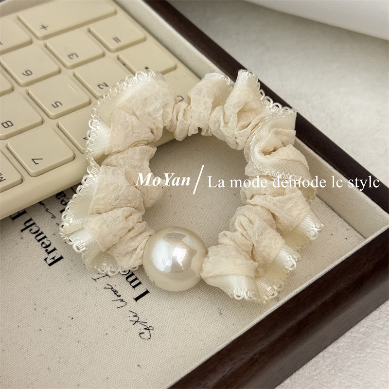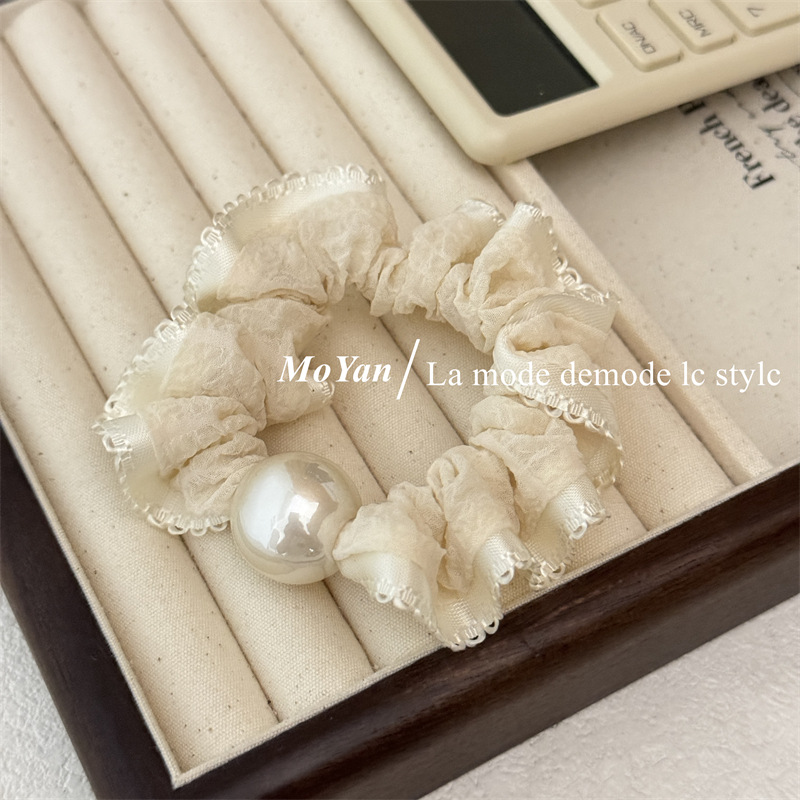 高弹力复古珍珠头绳清新花边小肠发圈简约马尾发绳扎头发皮筋皮套 English | 投诉