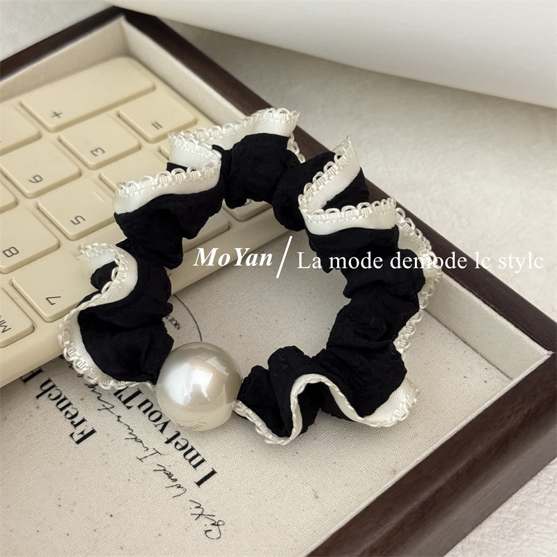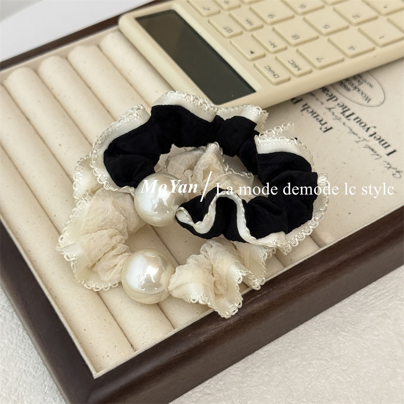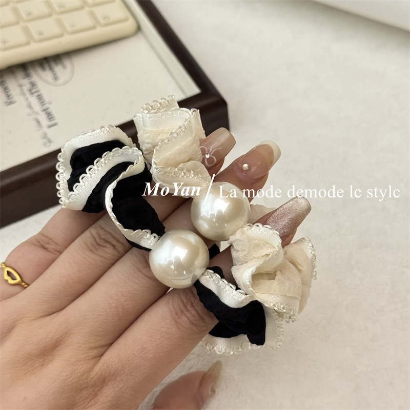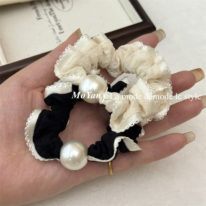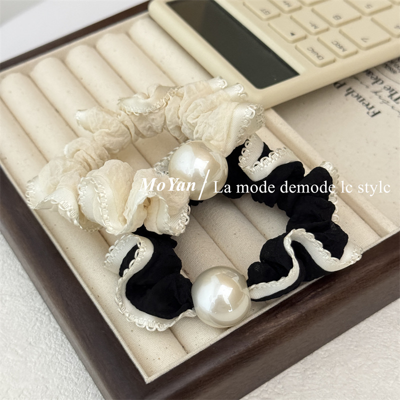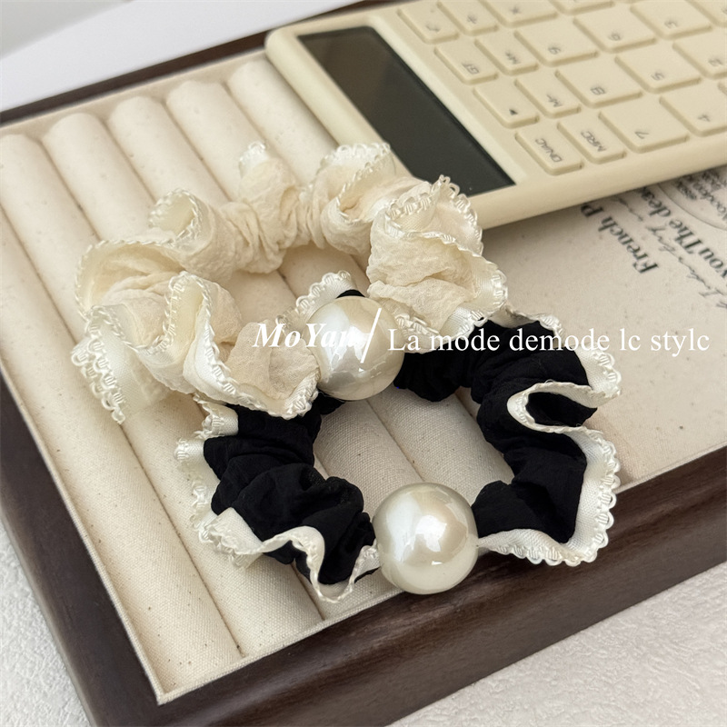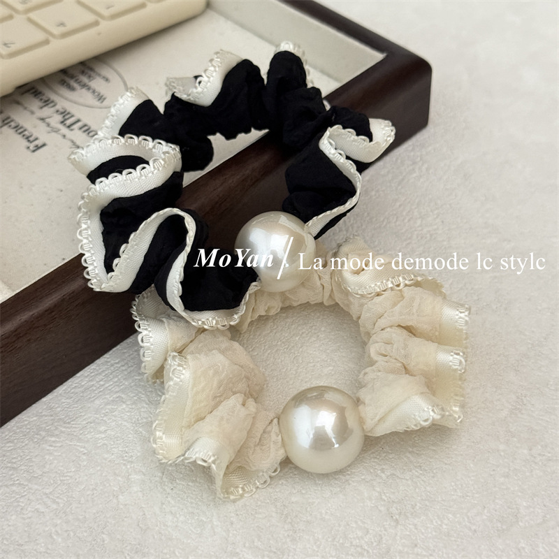 高弹力复古珍珠头绳清新花边小肠发圈简约马尾发绳扎头发皮筋皮套 English | 投诉
