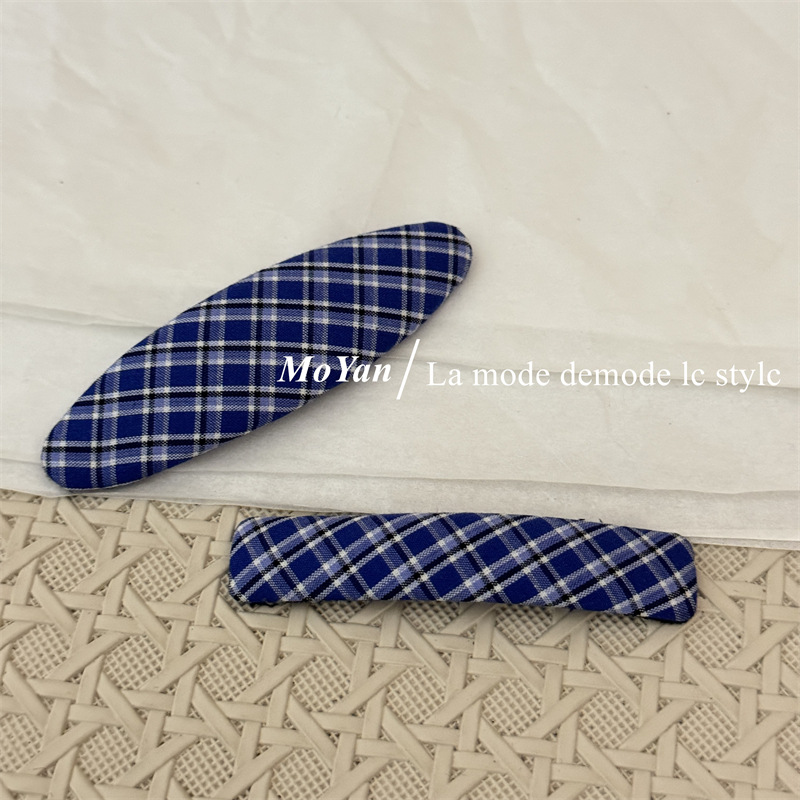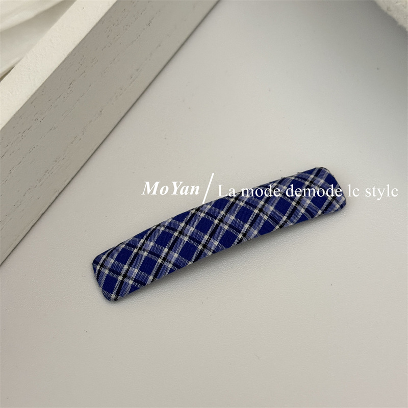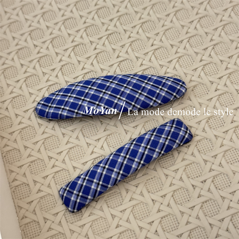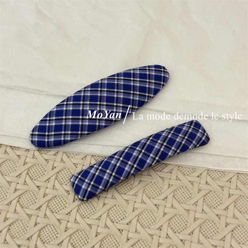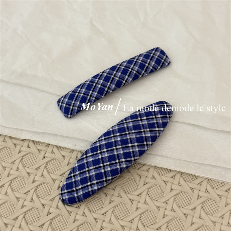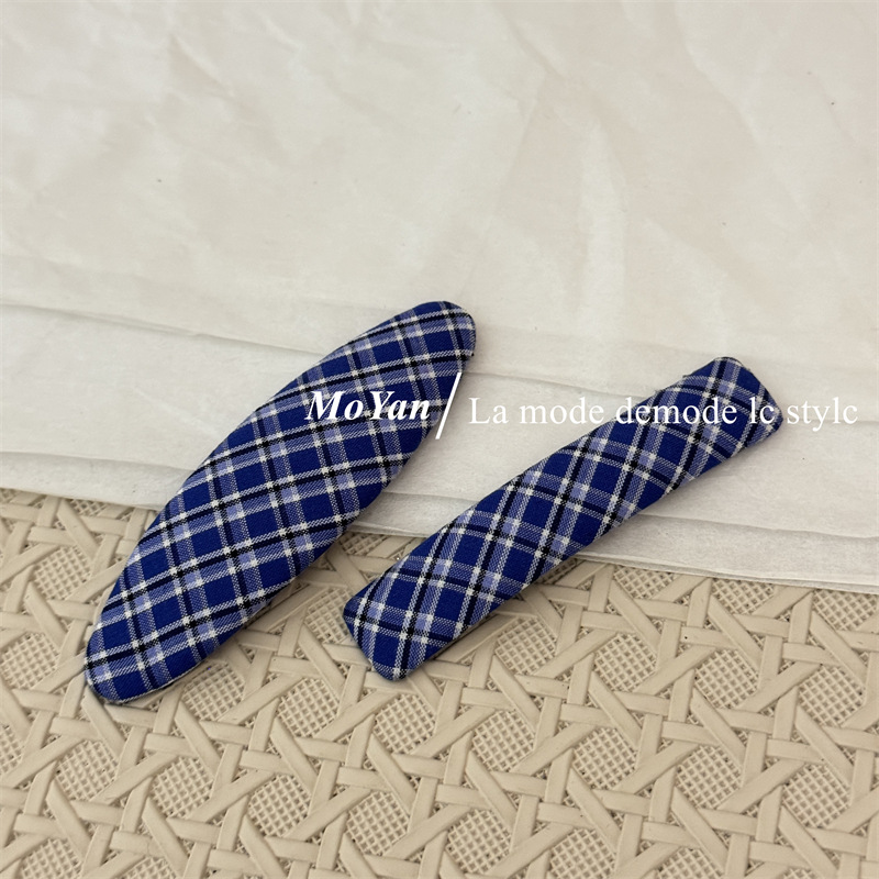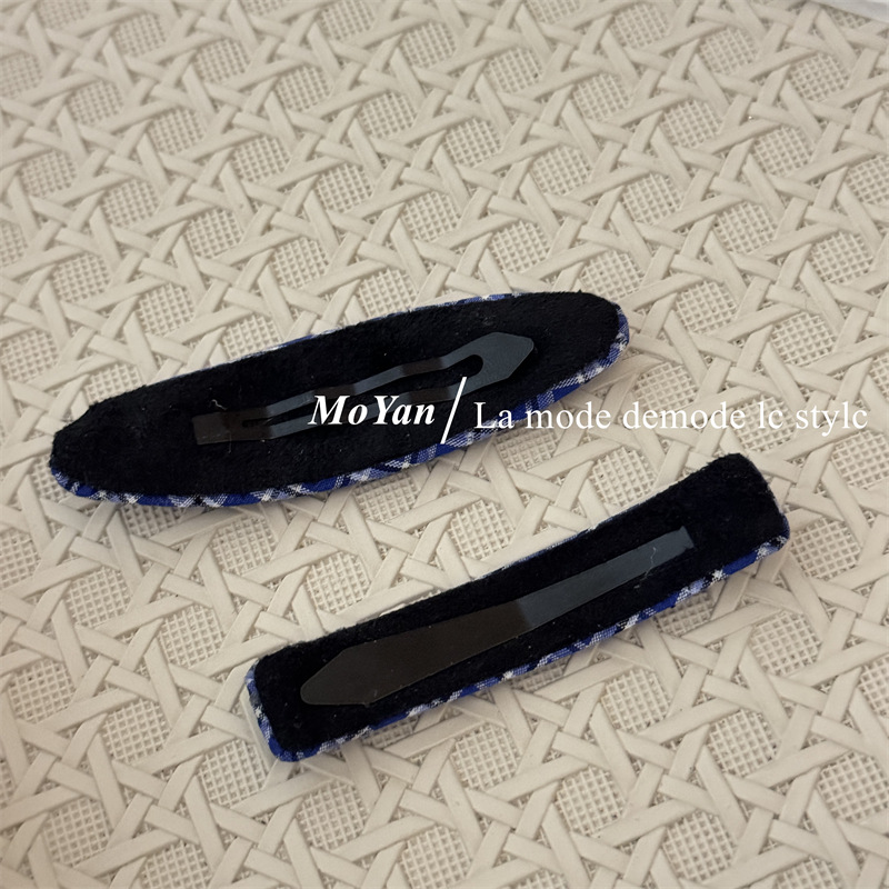 韩版新款复古藏蓝格纹几何发夹森系学院风刘海bb夹侧边夹子碎发卡 English | 投诉