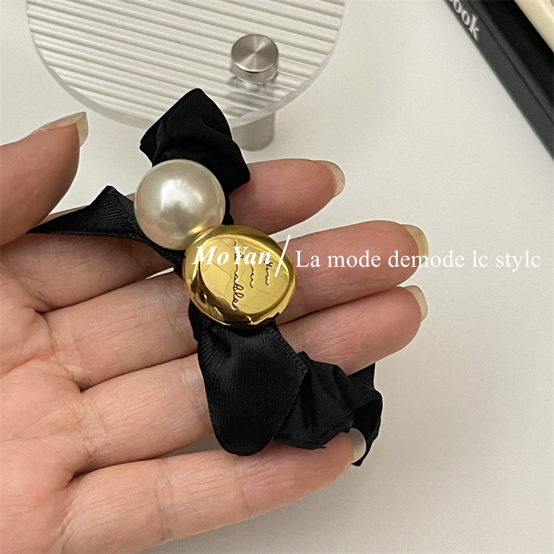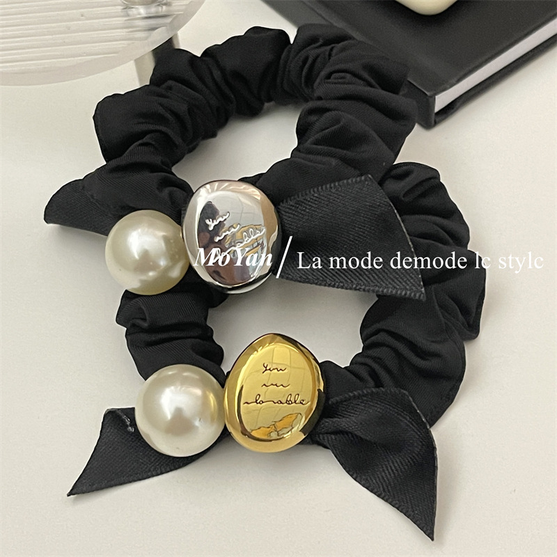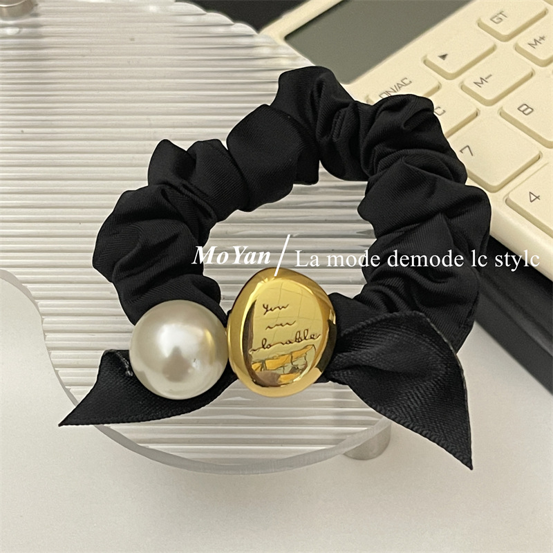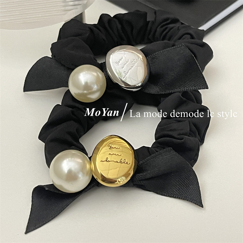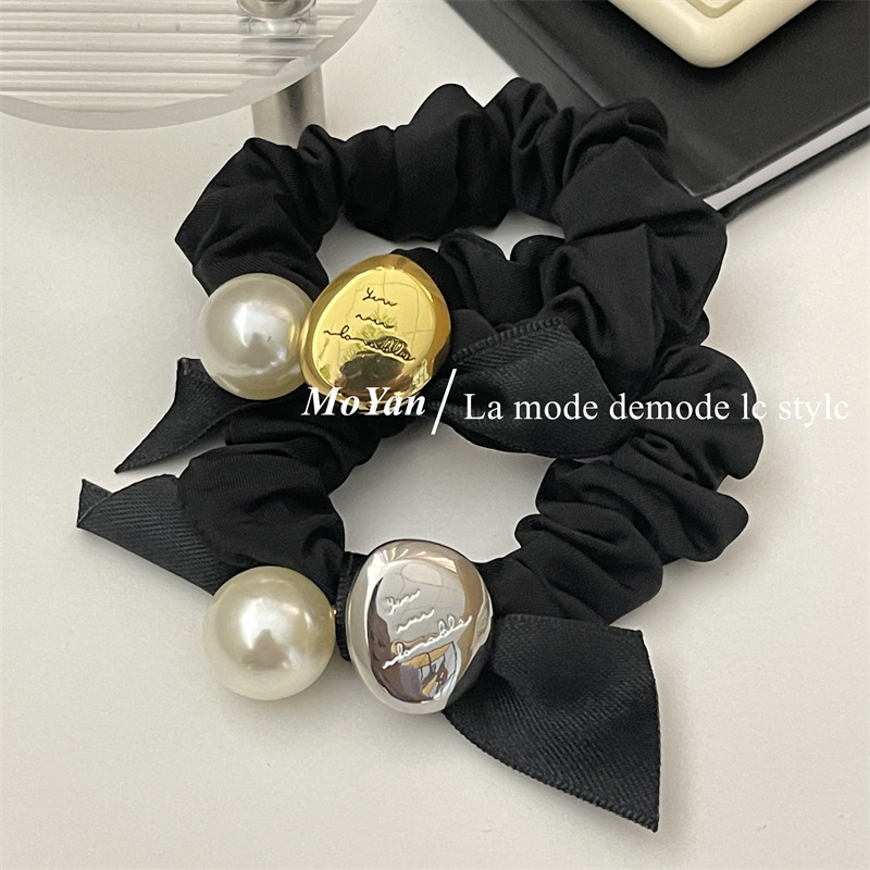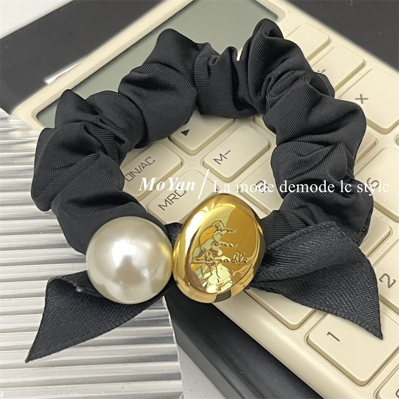 法式复古丝带蝴蝶结头绳皮筋女扎头发大肠发圈高弹力耐用珍珠发饰 English | 投诉
