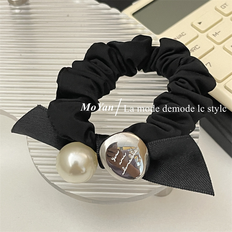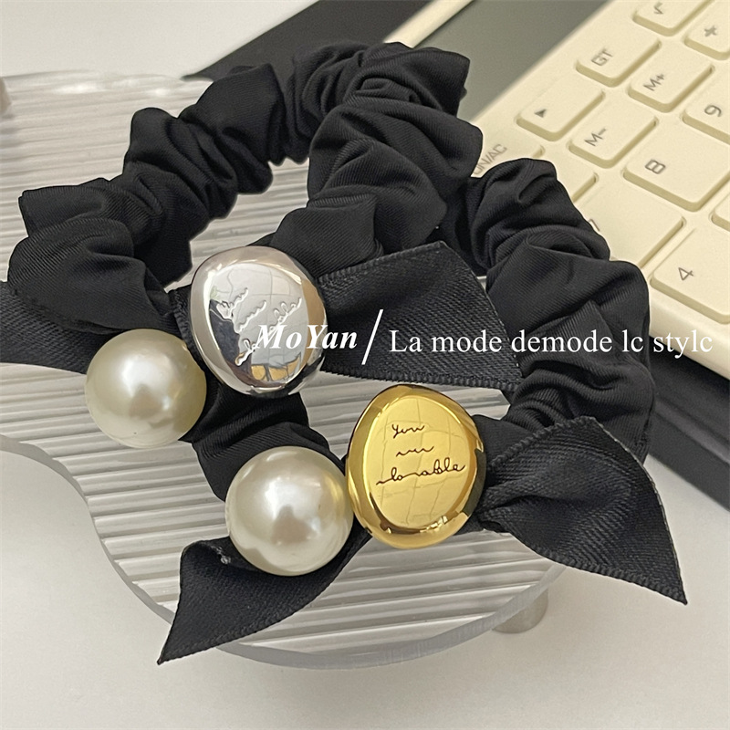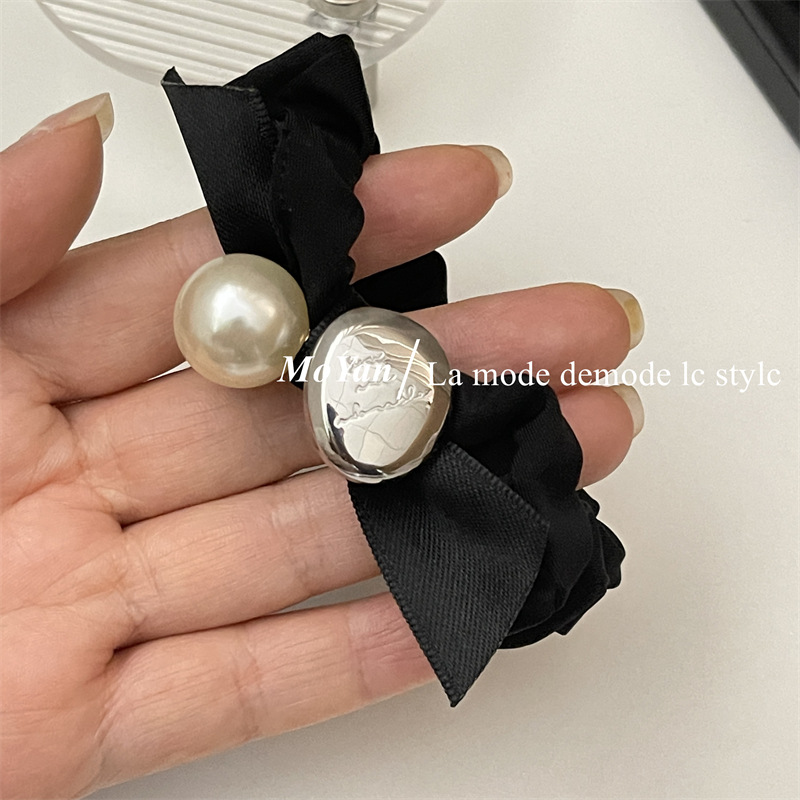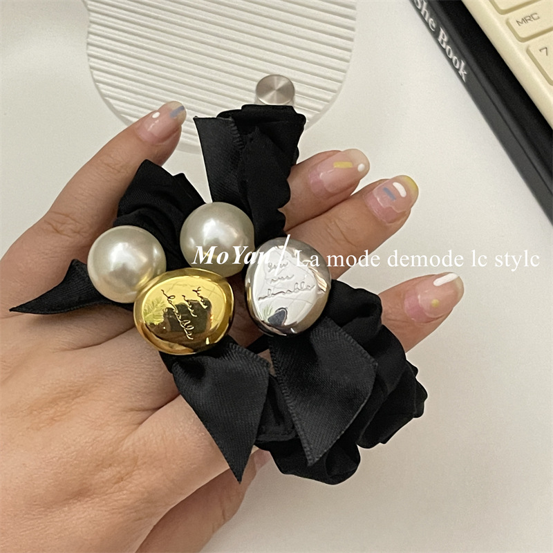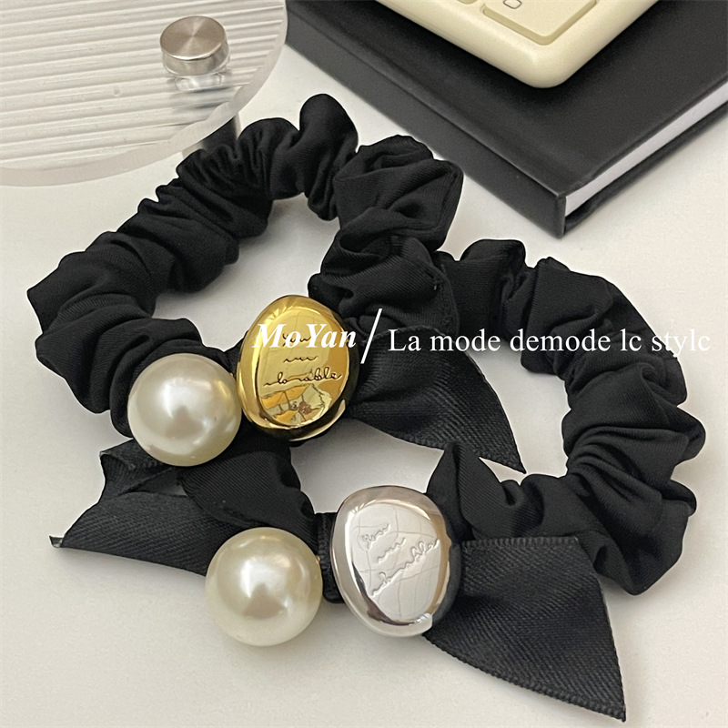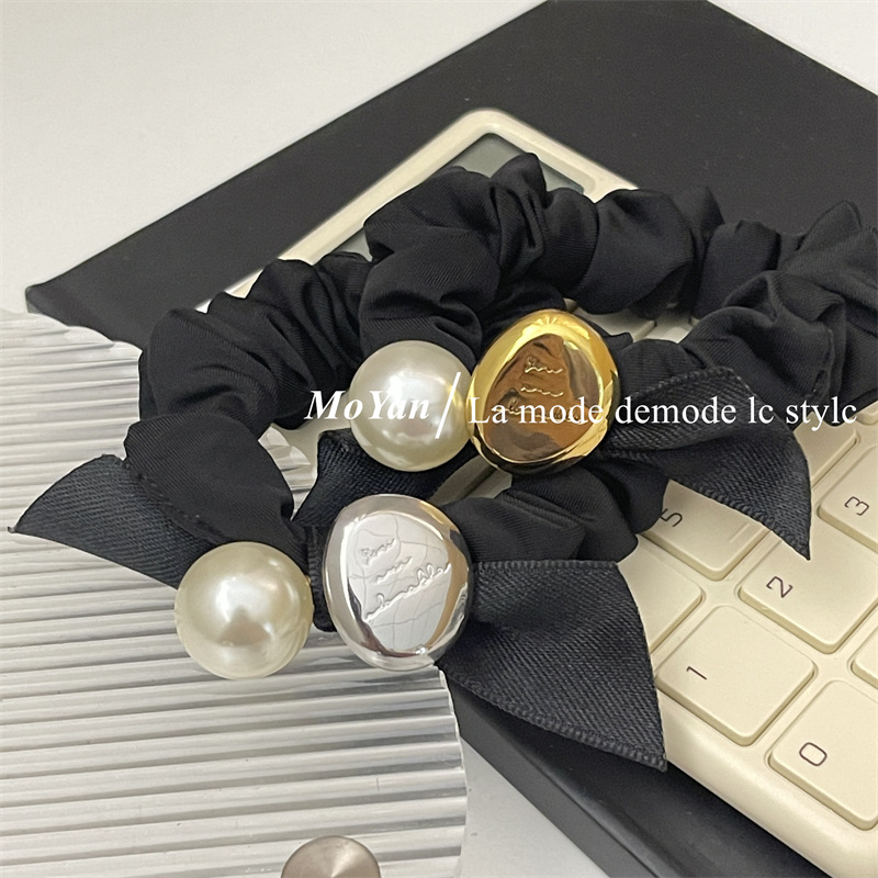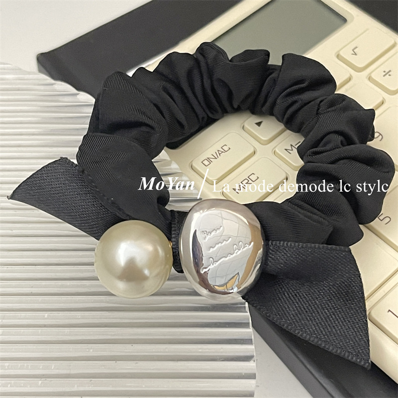 法式复古丝带蝴蝶结头绳皮筋女扎头发大肠发圈高弹力耐用珍珠发饰