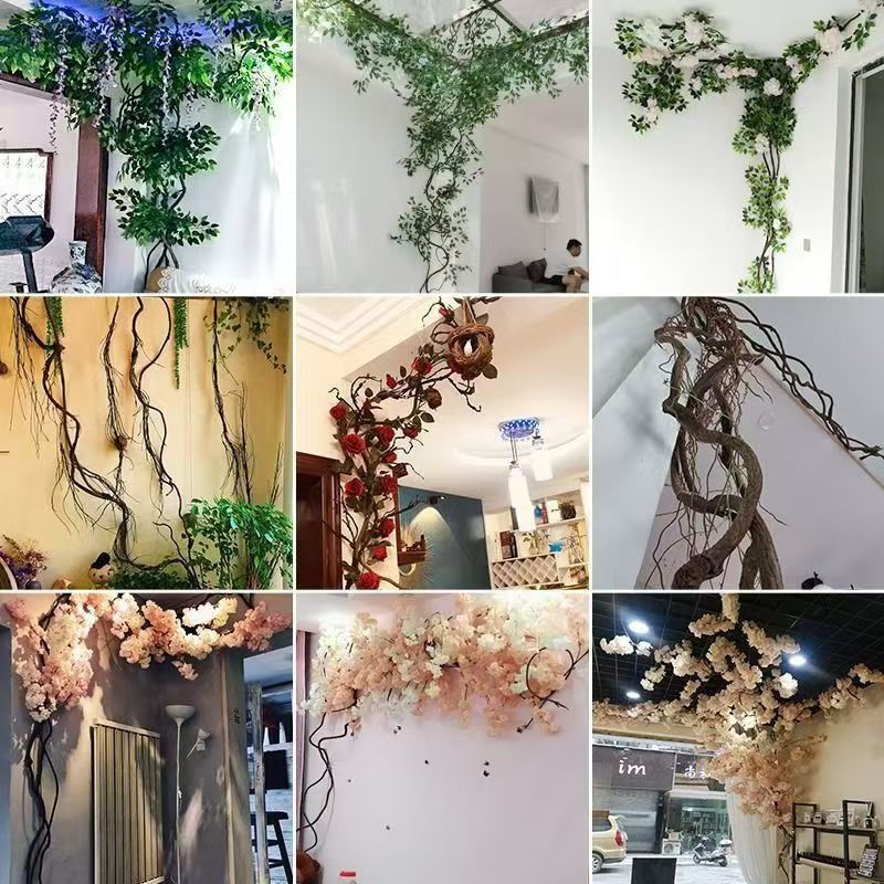 假花桃花单支干花塑料花客厅摆件婚庆树枝腊梅落地树户外装饰盆景