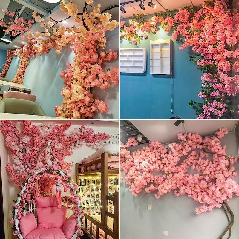 假花桃花单支干花塑料花客厅摆件婚庆树枝腊梅落地树户外装饰盆景 English | 投诉
