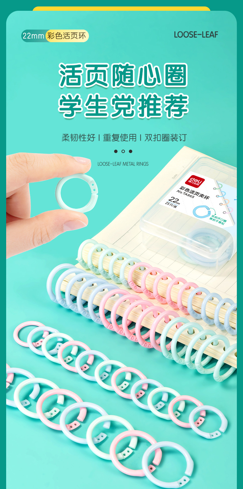 得力TA865彩色活页夹环书圈活页圈装订打孔新品批发办公文具