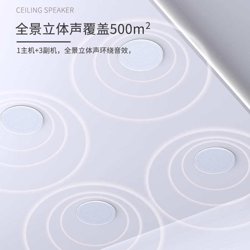 吸顶音箱为:全频高保真喇叭,无需功放机,直接蓝牙连接,1台主机最多搭配3套副机,多场景应用建议拍多套主机搭配副机使用(TWS互联或搭配功放机)。