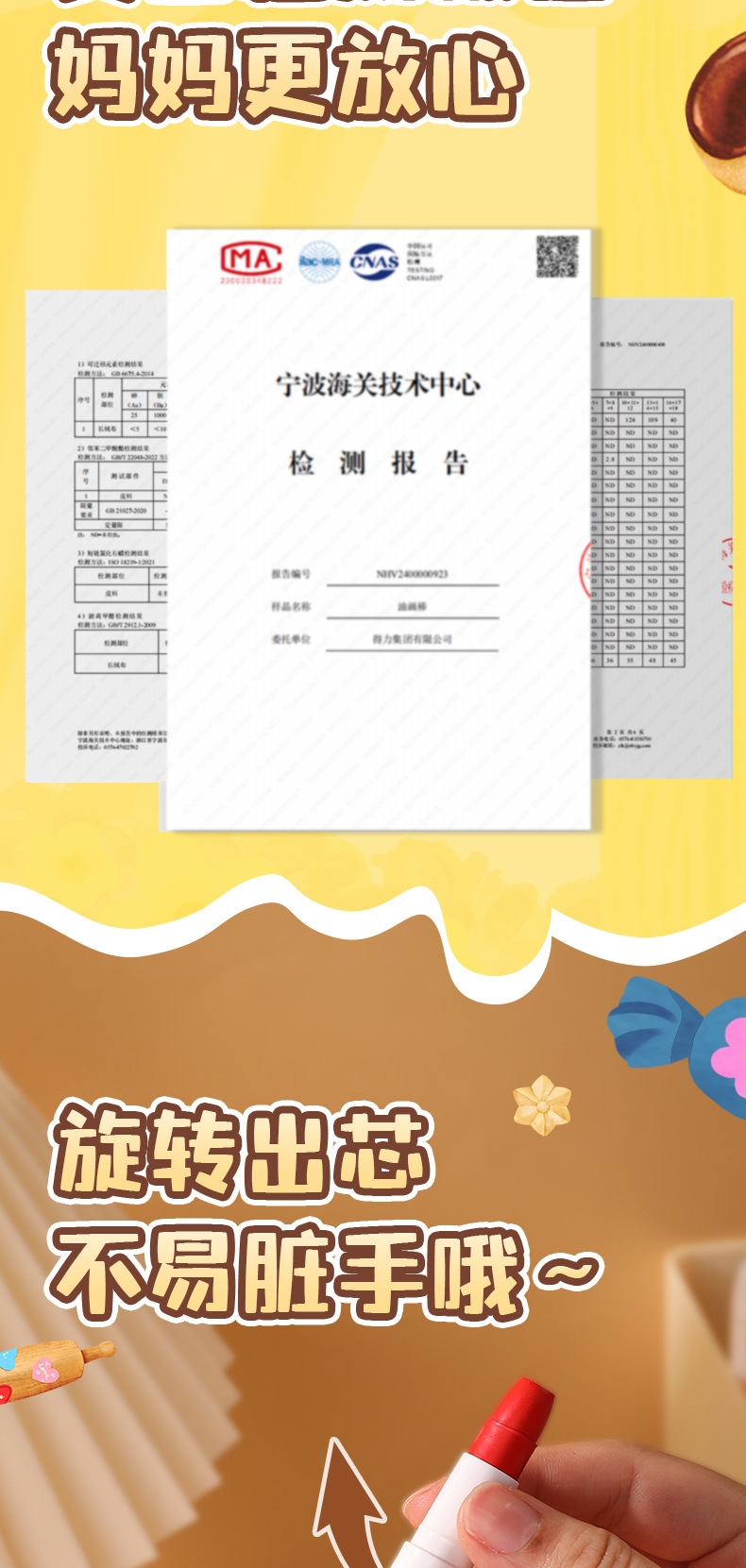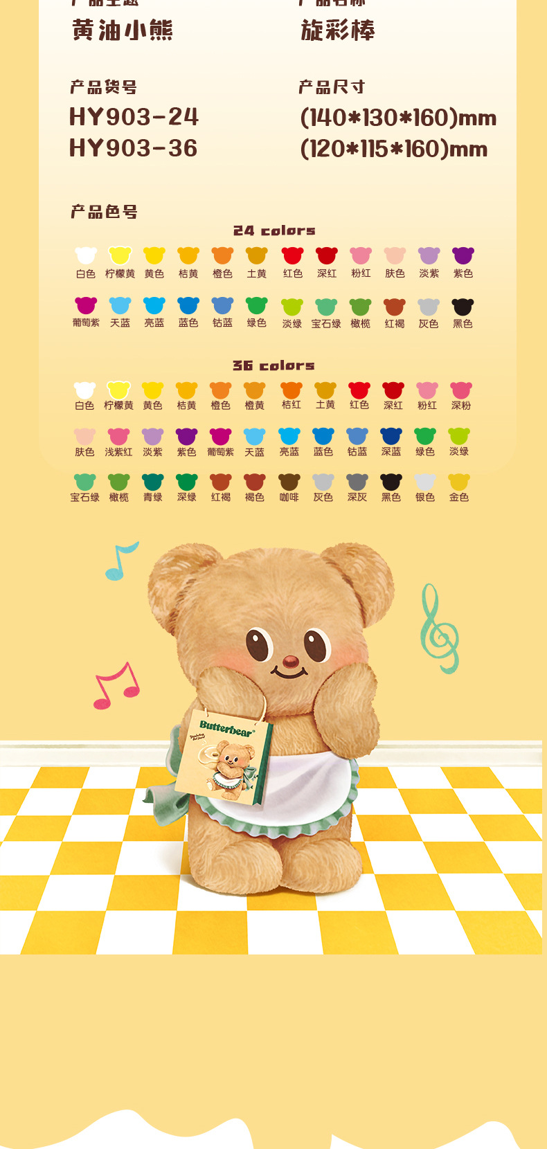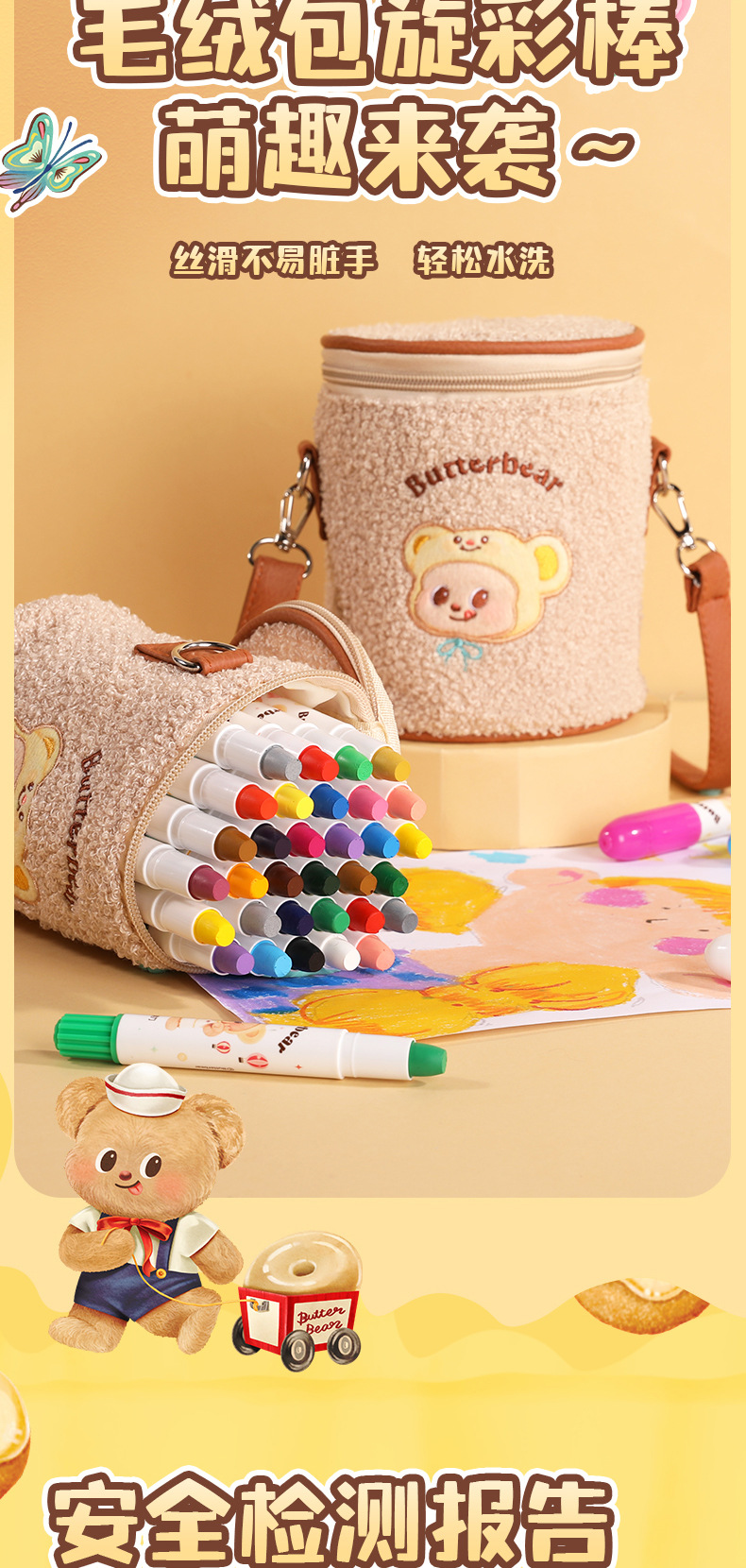 得力HY903黄油小熊粗圆杆速干旋彩棒可水洗带肩带不易脏手油画棒 投诉