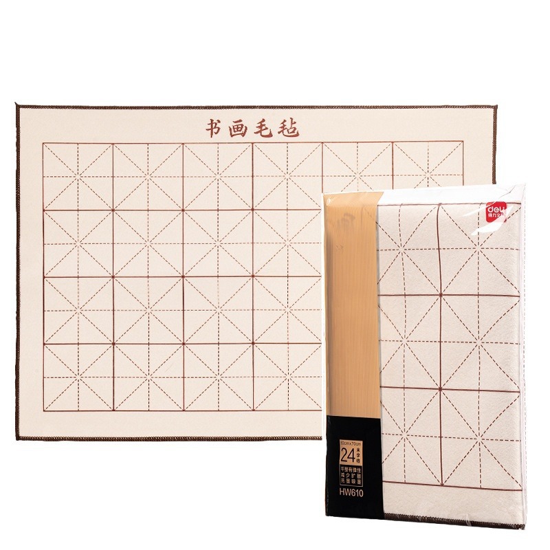 批发得力HW610书画毛毡50*70cm(白)24米字格学生练习书法绘画毛毡