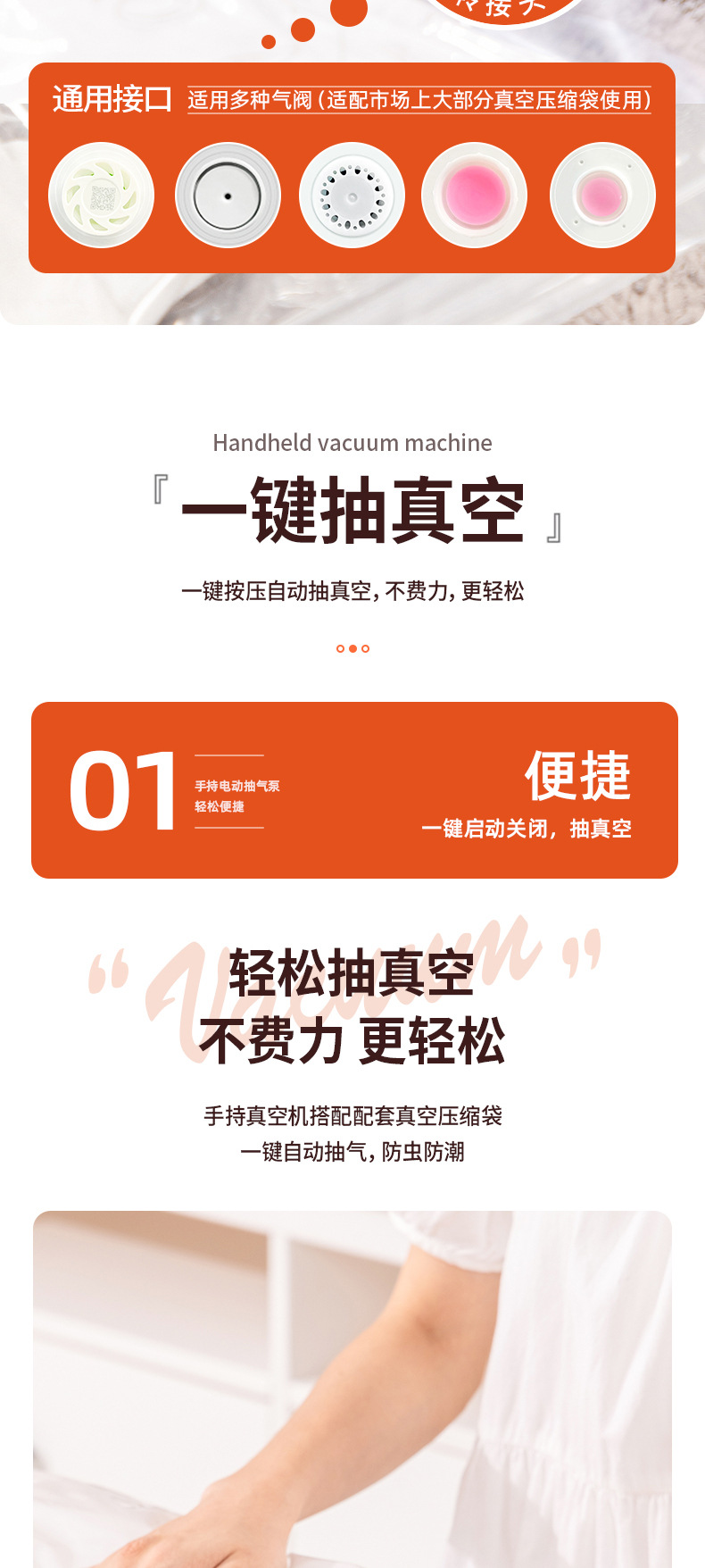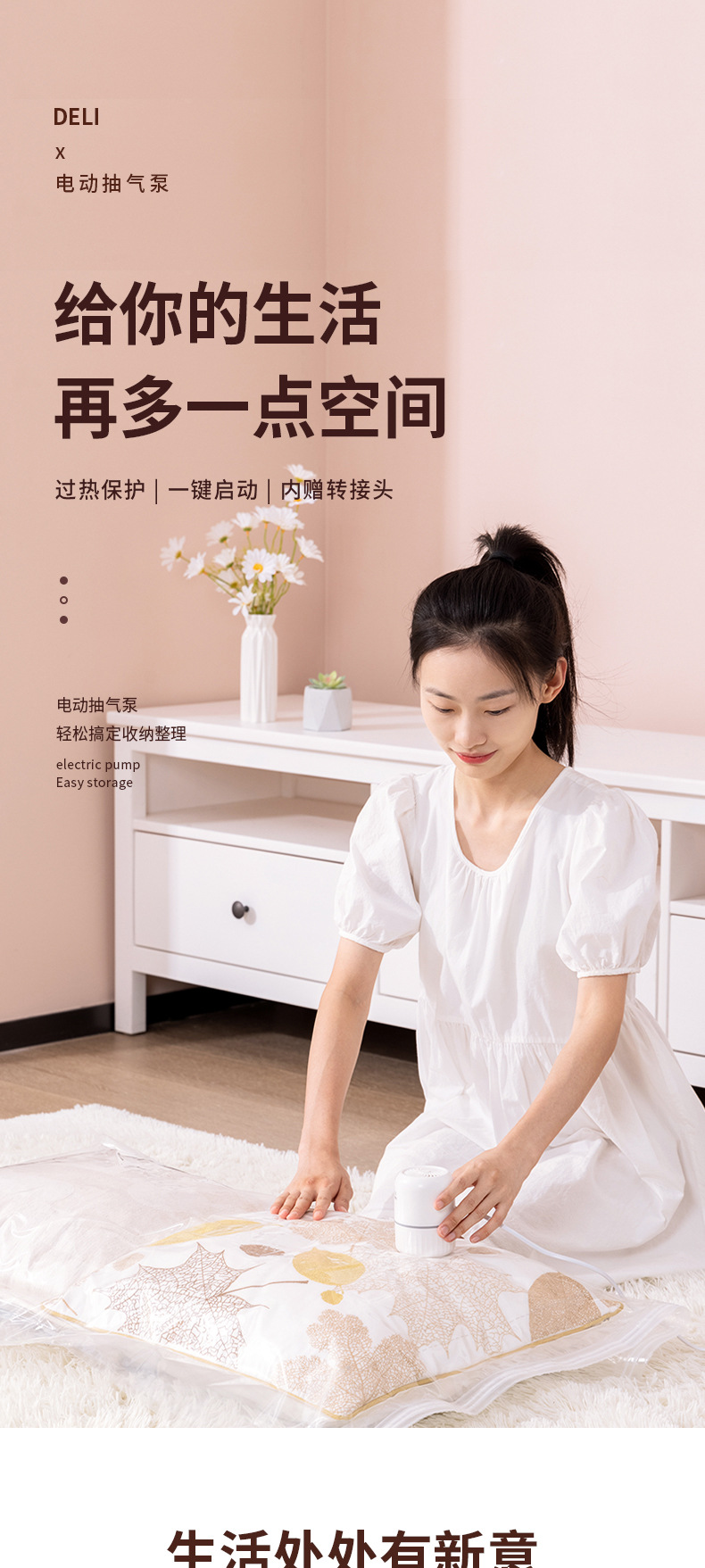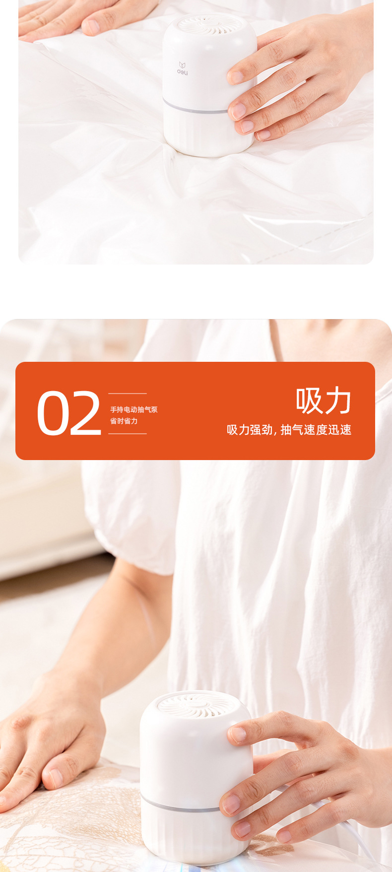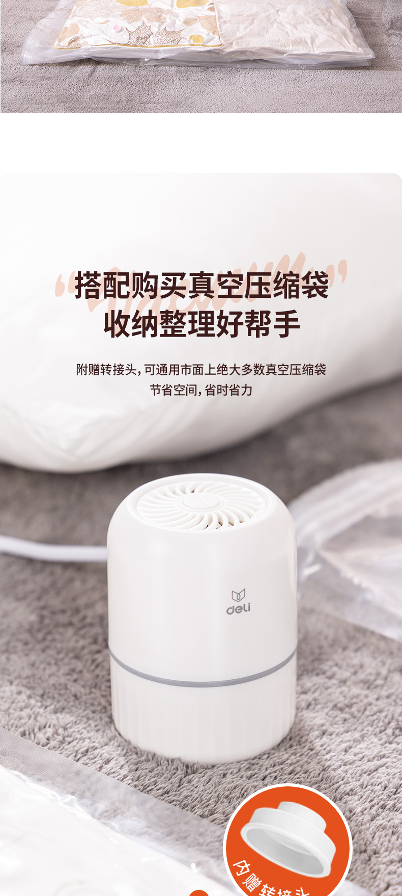 得力真空压缩袋专用电泵抽真空电动抽气筒便携吸气泵收纳小型家用