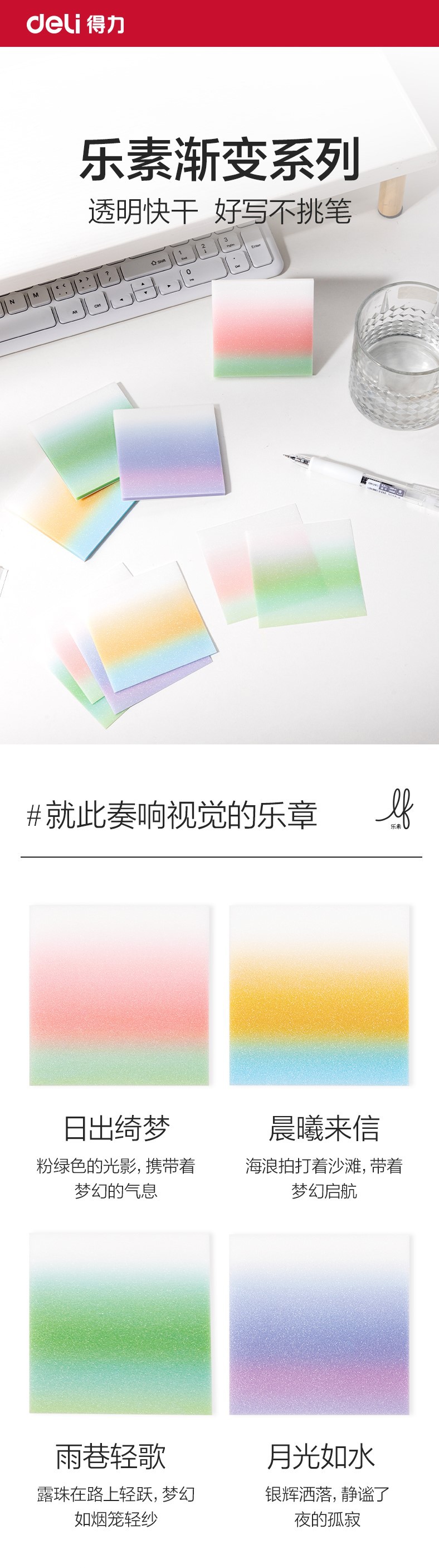 得力BT405渐变记事贴膜类可书写便利贴学生办公磨砂百事贴便签纸