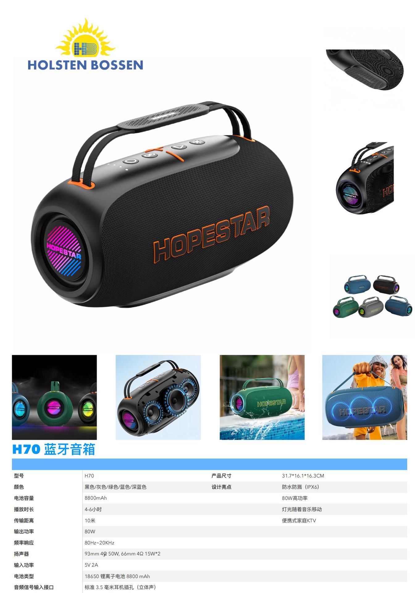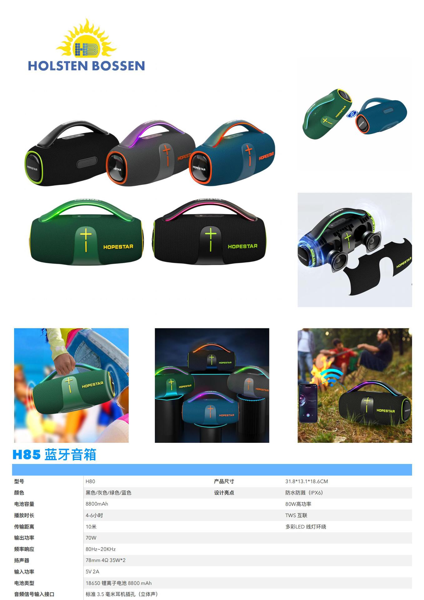 大功率蓝牙音响 80W户外手提便携带话筒卡拉OK低音炮RGB彩灯音箱