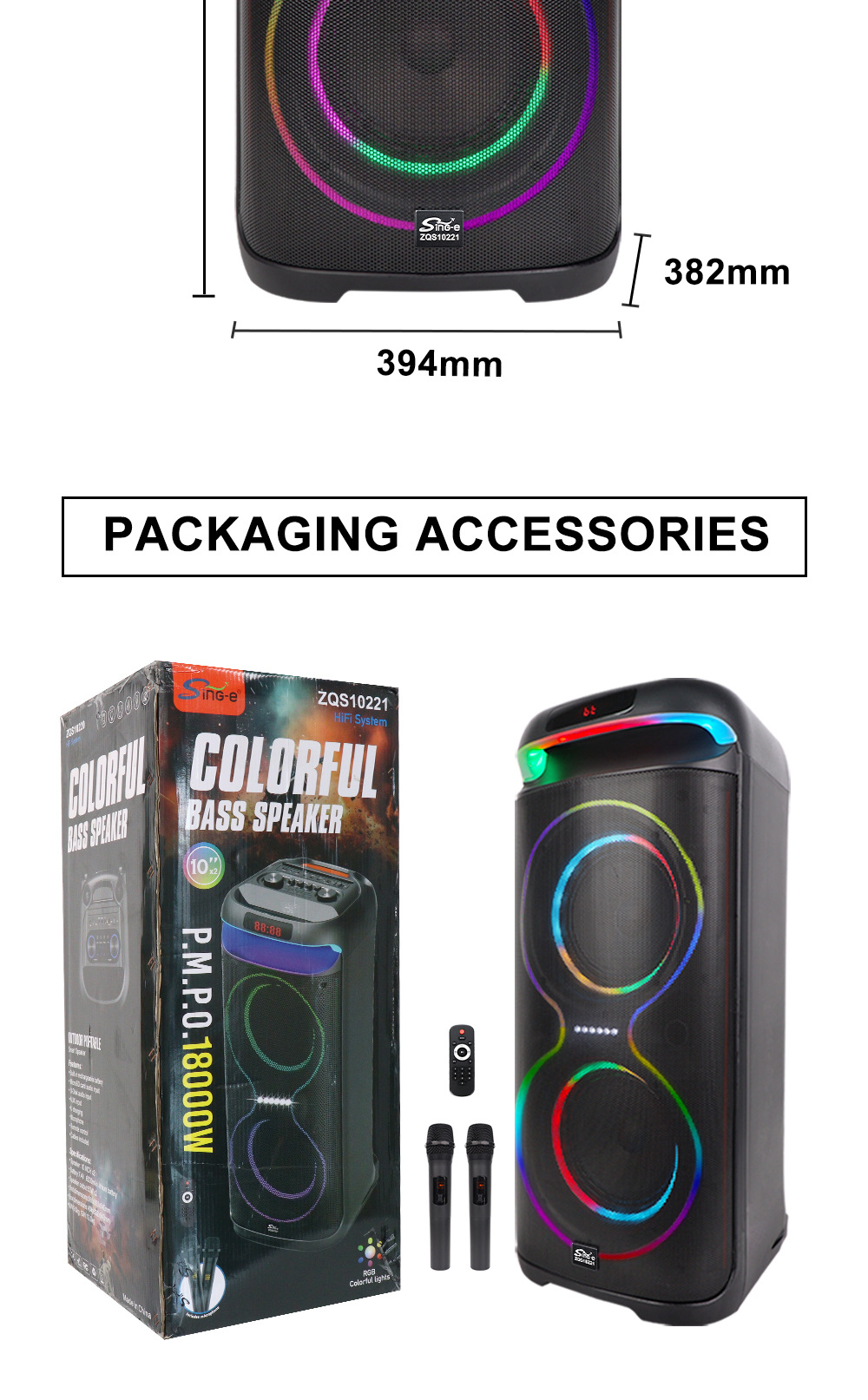 配件 :说明书.遥控器.2个无线话筒.充电器