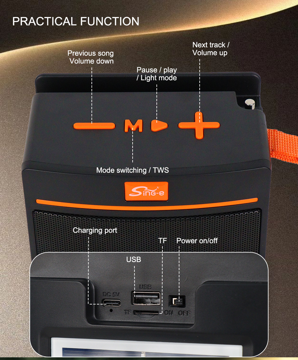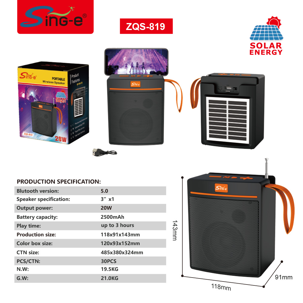 ZQS819爆款露营太阳能音箱便携式无线蓝牙音响超重低音FM收音机